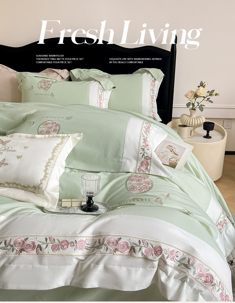 当前位置: 91家纺网 > 商品网购 > 床品套件 > 四件套 > 长绒棉四件套 > 冬季爆款A类长绒棉加厚磨毛全棉纯棉保暖高端重工刺绣全工艺被套床单轻奢床上用品 花巷-茶绿