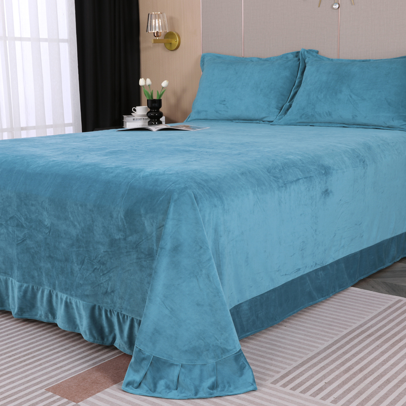 紫月轩家纺 2025新款牛奶绒雕花四件套香槟-水绿,香槟-水绿