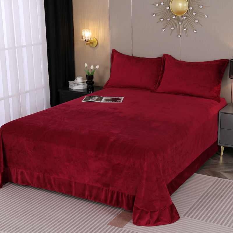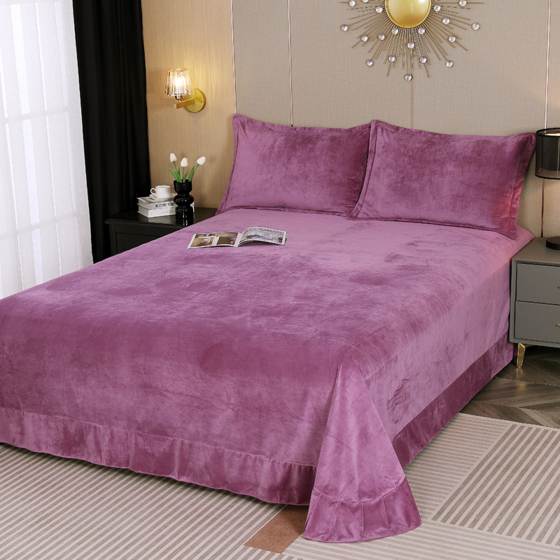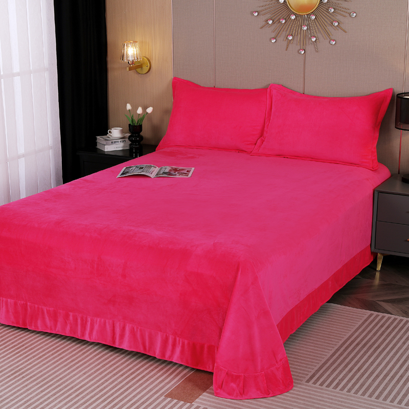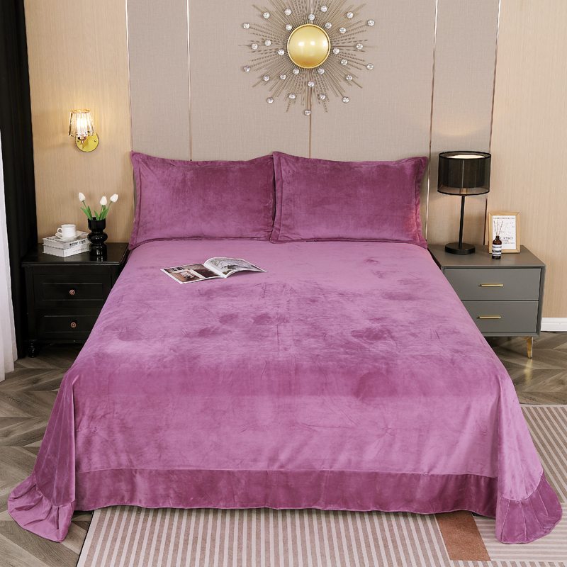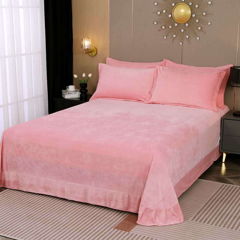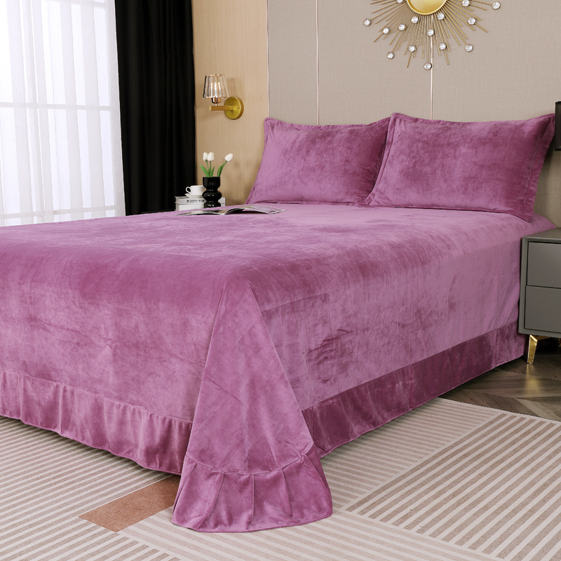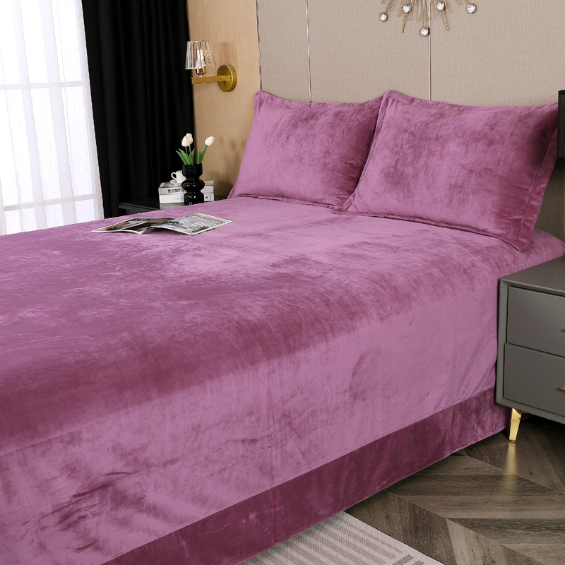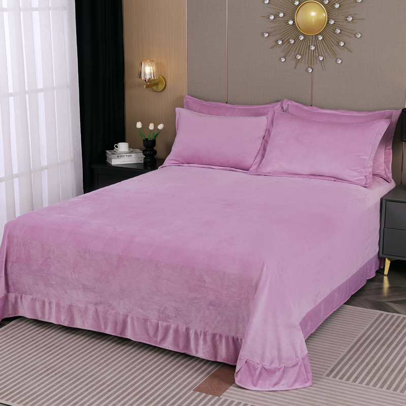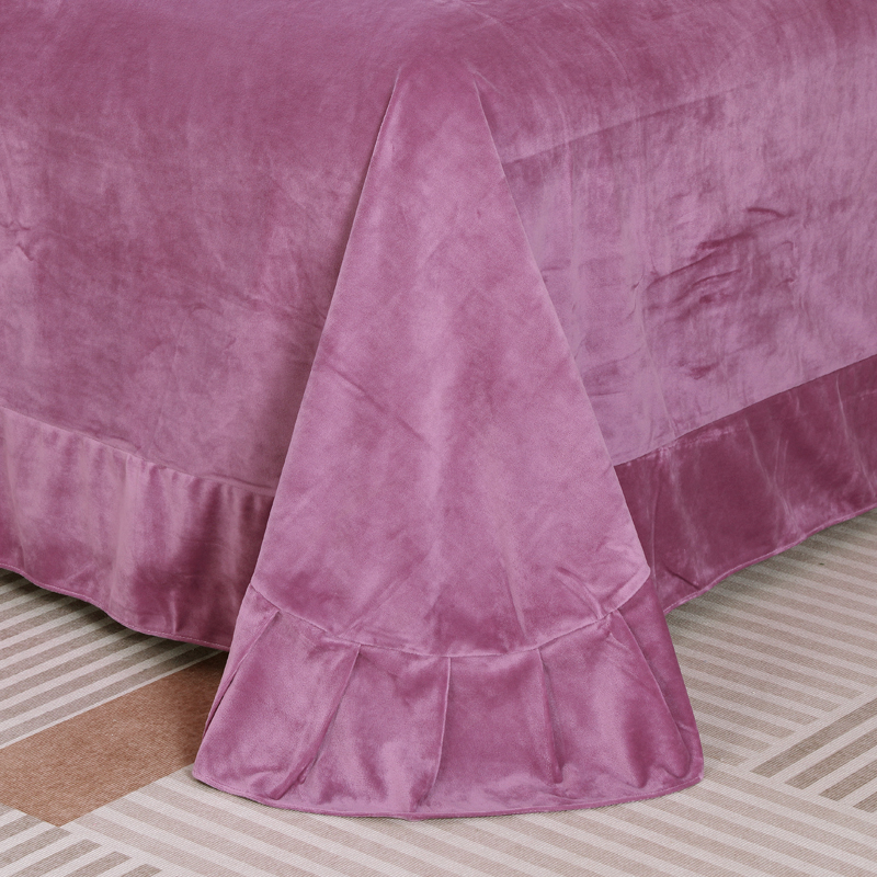 紫月轩 2025新款高克重白拉毛花边水晶绒四件套 红豆沙,红豆沙
