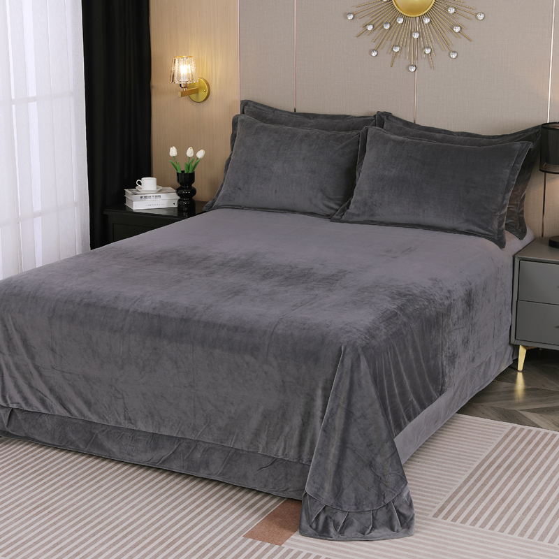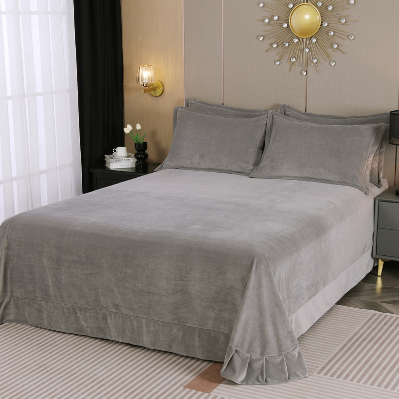 紫月轩家纺 2025新款牛奶绒雕花四件套香槟-浅灰,香槟-浅灰