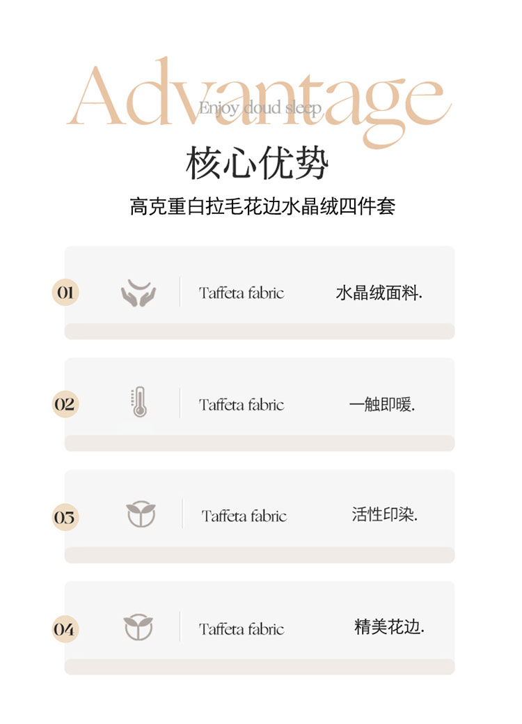 (总)紫月轩 2025新款高克重白拉毛花边水晶绒四件套