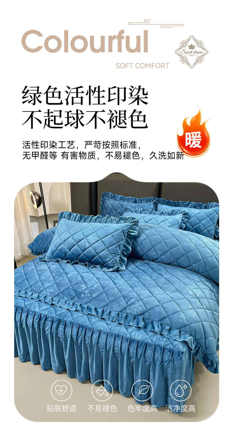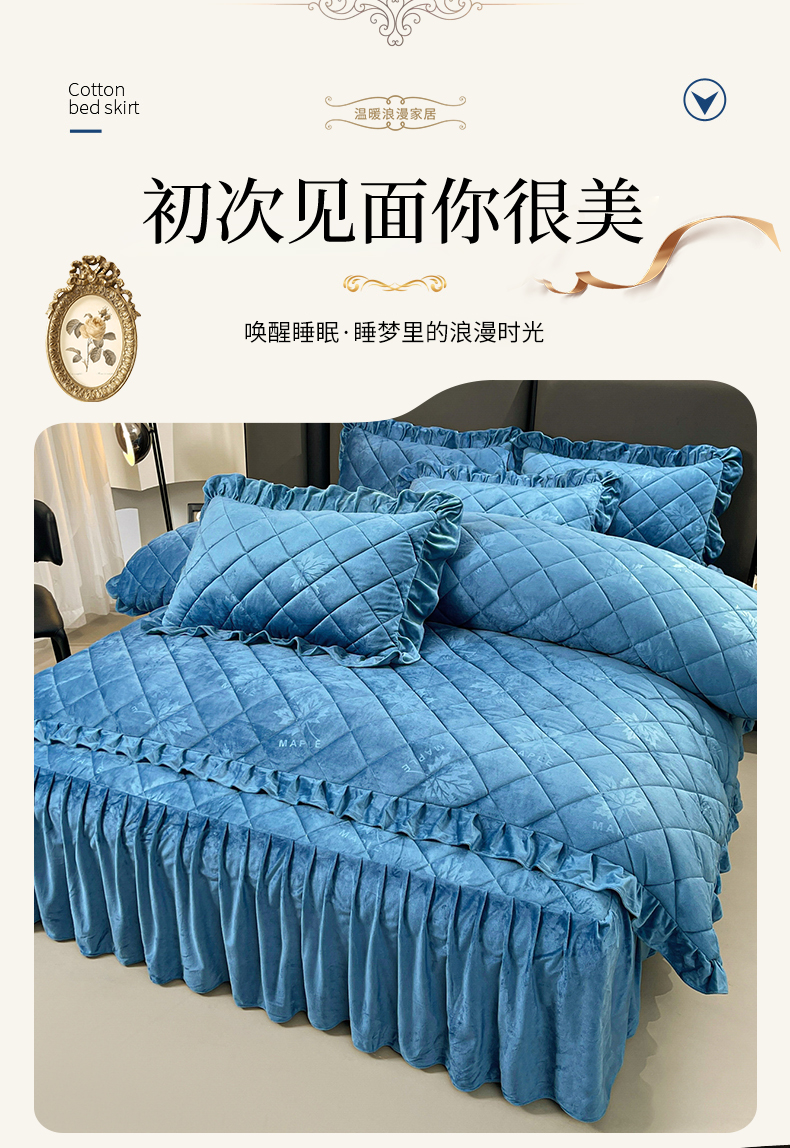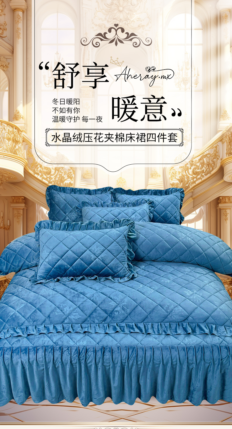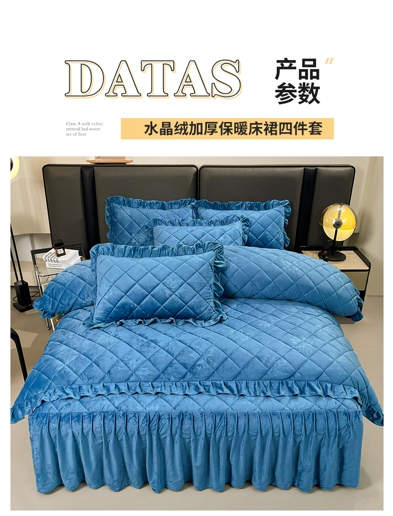 当前位置: 91家纺网 > 商品网购 > 床品套件 > 四件套 > 水晶绒四件套 > 屹成家纺 2025新款压花水晶绒床裙四件套 (四件套不低于210元起) 蔚蓝