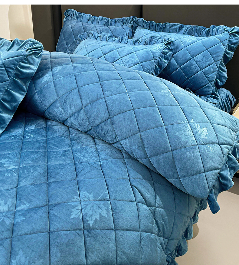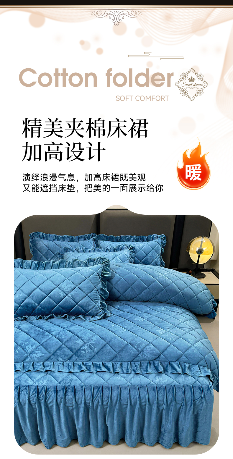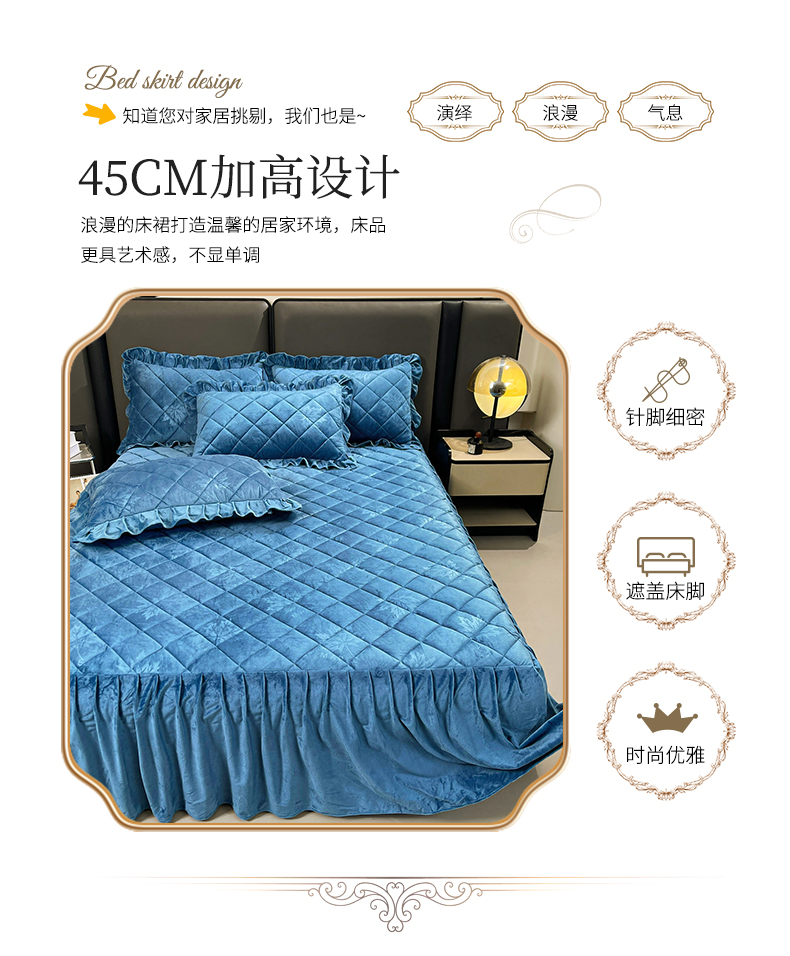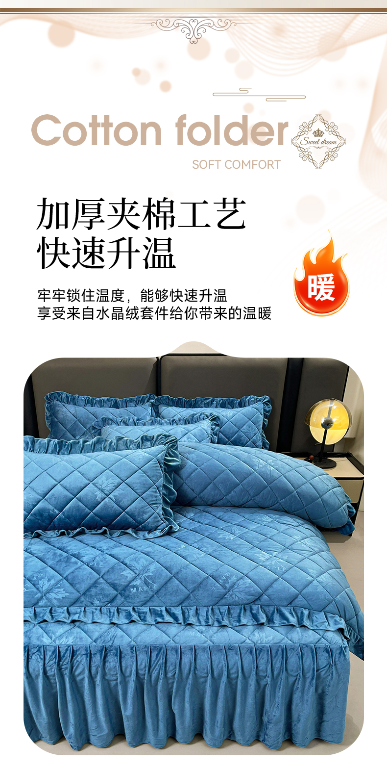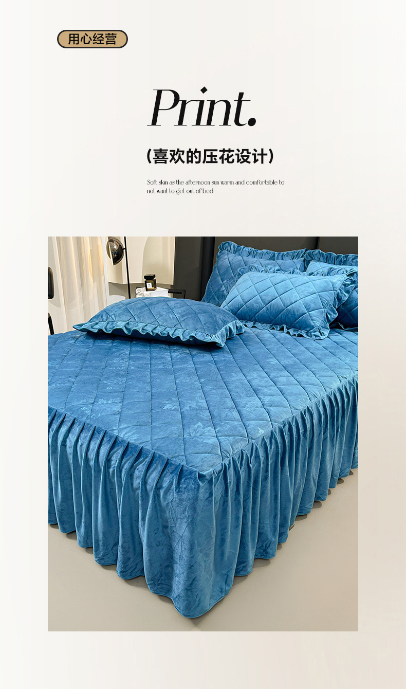 当前位置: 91家纺网 > 商品网购 > 床品套件 > 四件套 > 水晶绒四件套 > 屹成家纺 2025新款压花水晶绒床裙四件套 (四件套不低于210元起) 蔚蓝