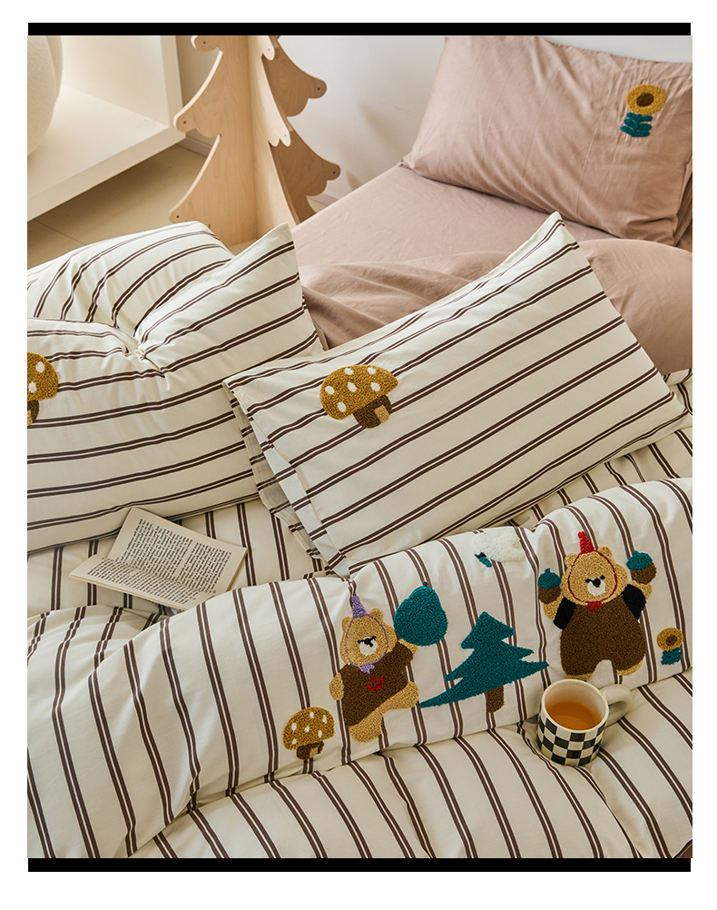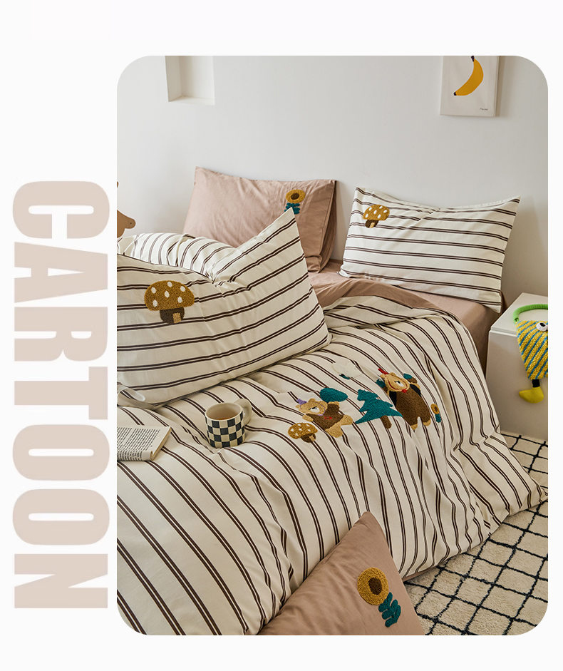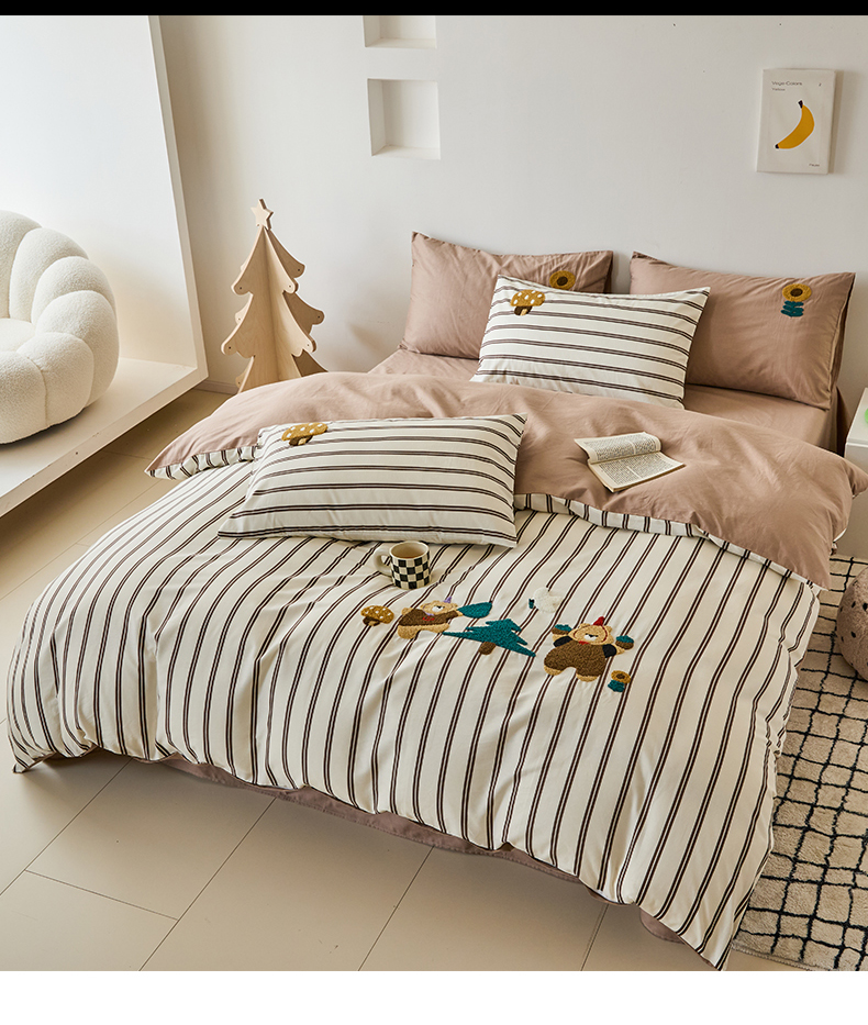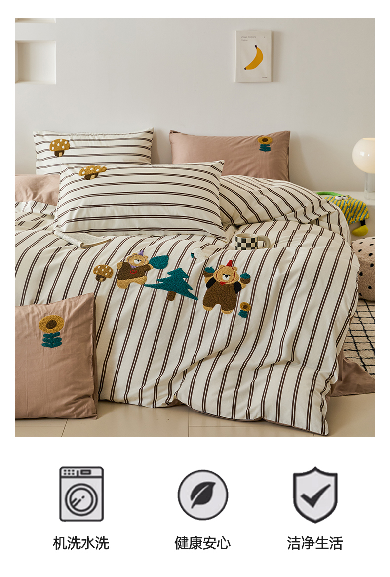 (总)锦觅 2025新款时尚条纹小清新卡通学生季系列印花绣花全棉纯棉四件套,小画家,puppy艺术家,丛林梦想,你好小熊,所象披靡,摇钱树,有钱花