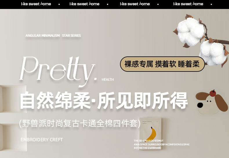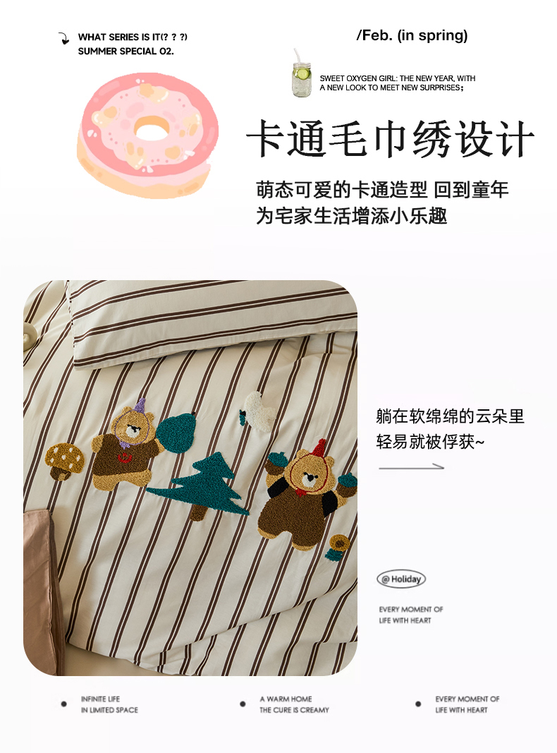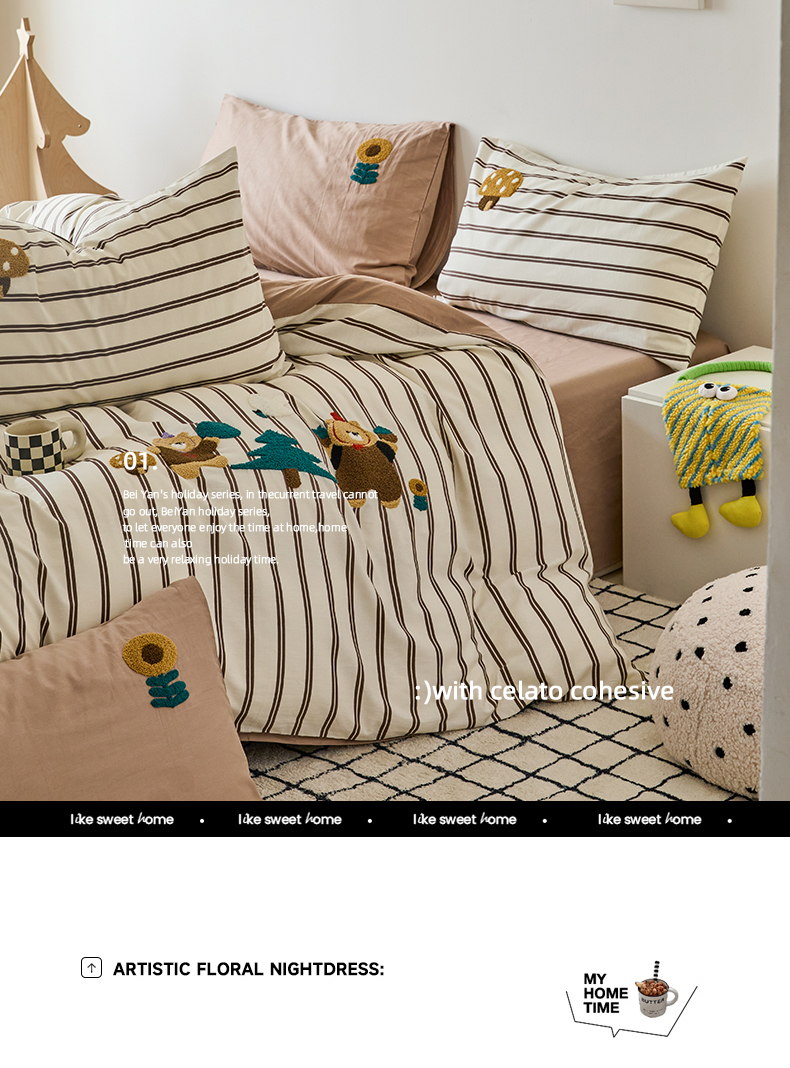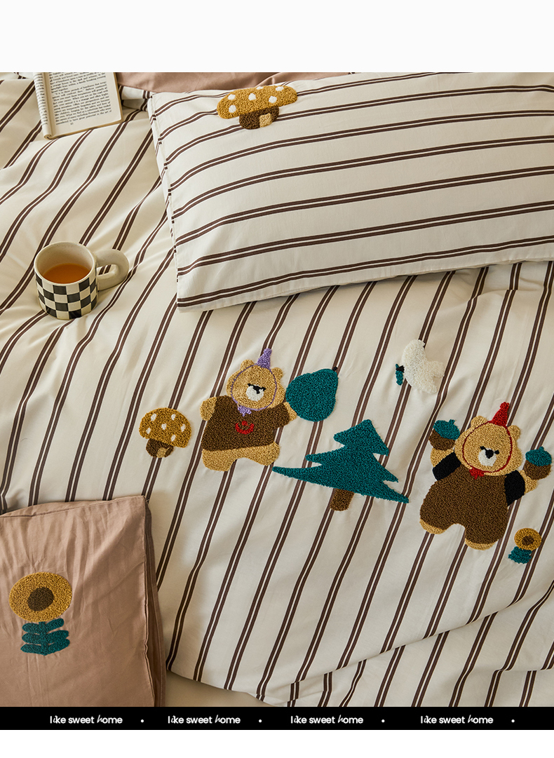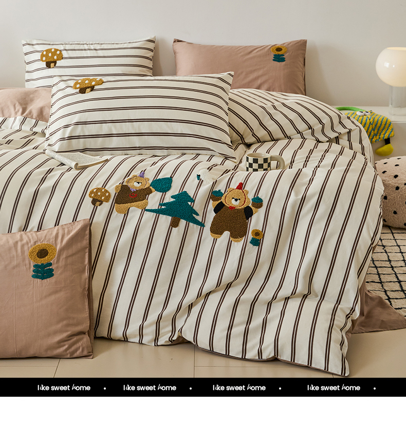 (总)锦觅 2025新款时尚条纹小清新卡通学生季系列印花绣花全棉纯棉四件套,小画家,puppy艺术家,丛林梦想,你好小熊,所象披靡,摇钱树,有钱花