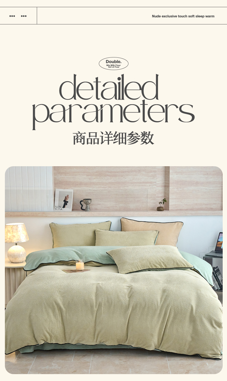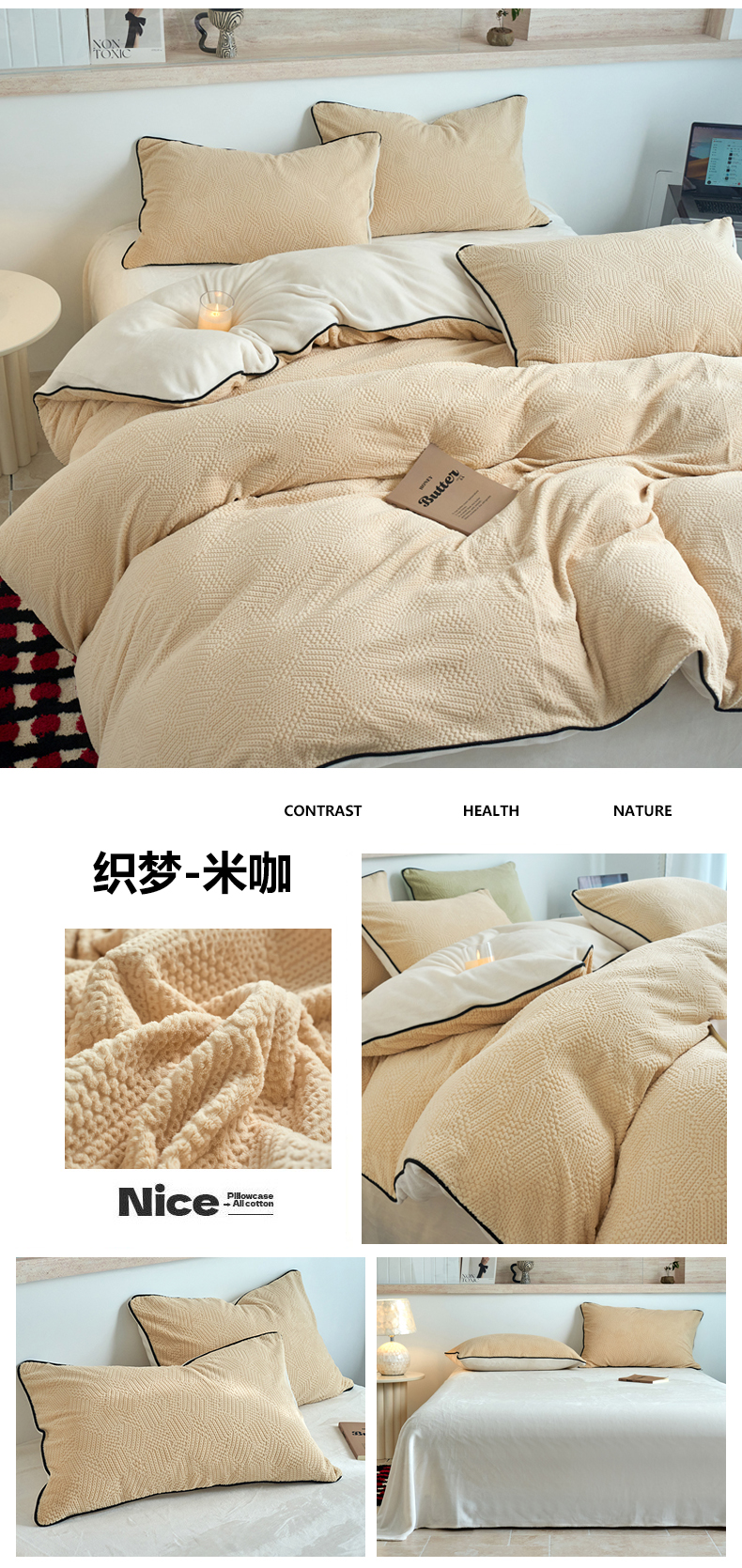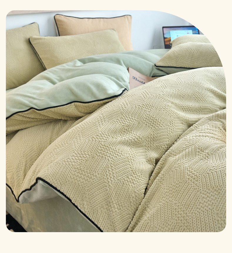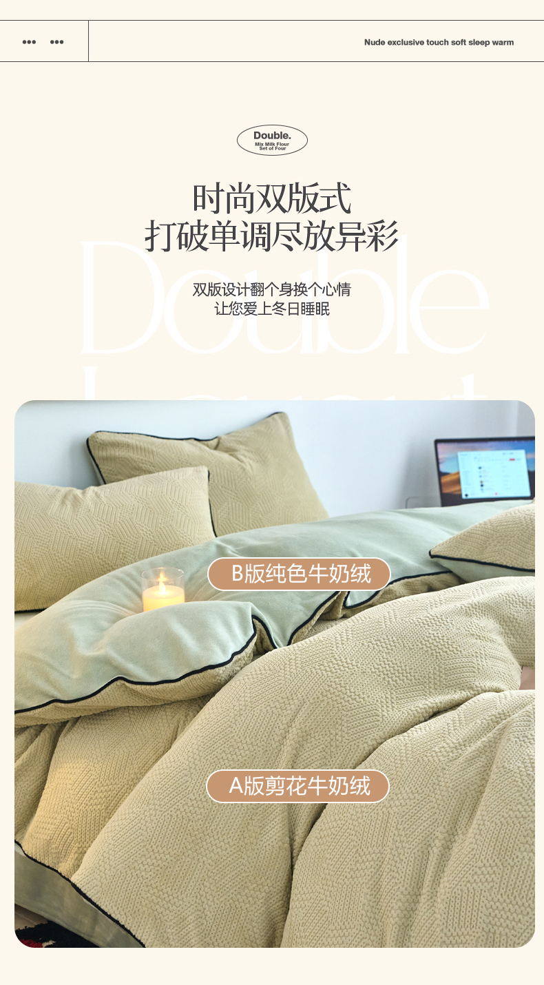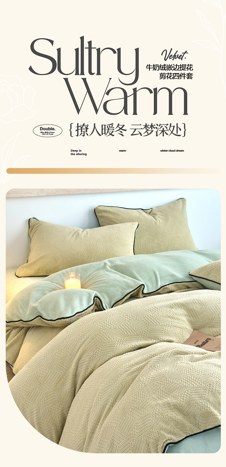 当前位置: 91家纺网 > 商品网购 > 床品套件 > 四件套 > 牛奶绒四件套 > 乐居家纺 2025新款牛奶绒嵌边提花剪花四件套(含买家秀和质检报告) 织梦-绿