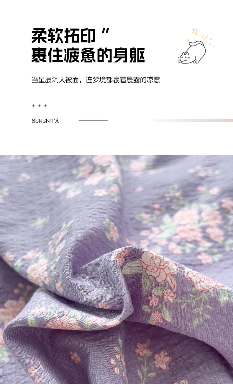 当前位置: 91家纺网 > 商品网购 > 床上用品 > 被套 > 三盛源 2025新款韩系小花卉镂空花边超柔皱皱双层纱水洗棉单被套被套单件 紫萝漫想