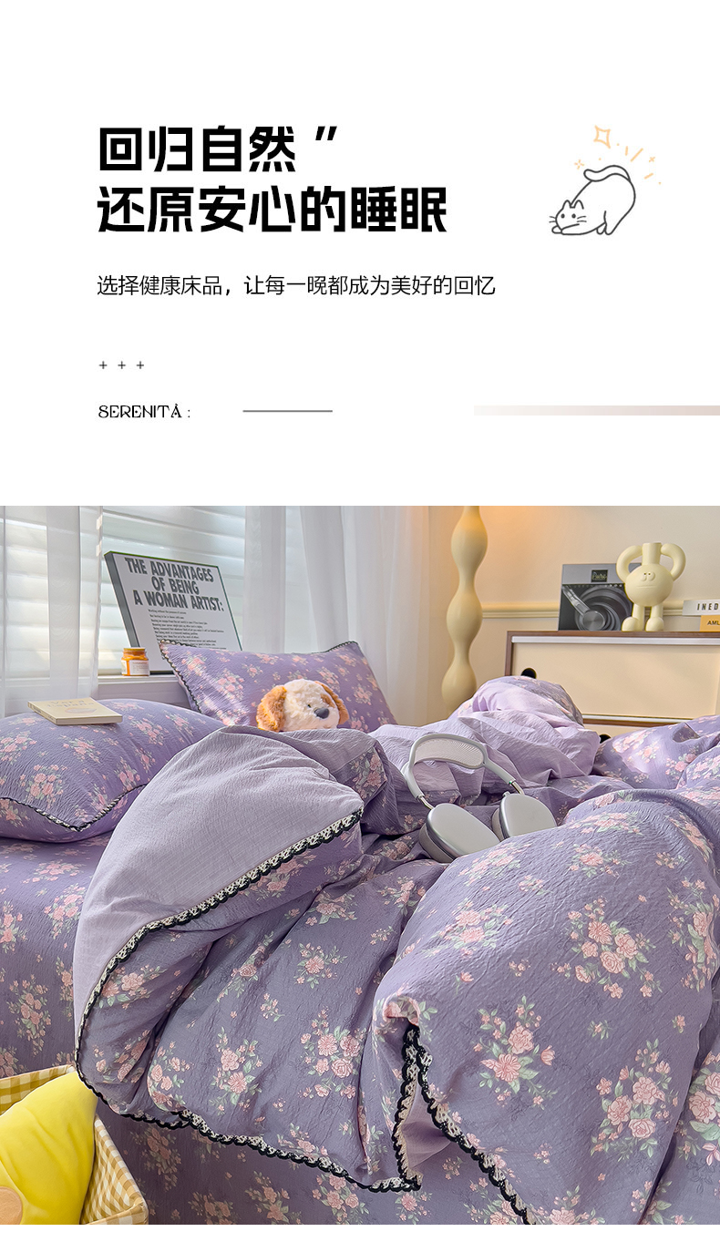 • 91家纺网 家纺一手货源 找家纺 三盛源 2025新款韩系小花卉镂空花边超柔皱皱双层纱水洗棉单被套被套单件 紫萝漫想 91家纺网 家纺一手货源 找家纺 三盛源 2025新款韩系小花卉镂空花边超柔皱皱双层纱水洗棉单被套被套单件 紫萝漫想
