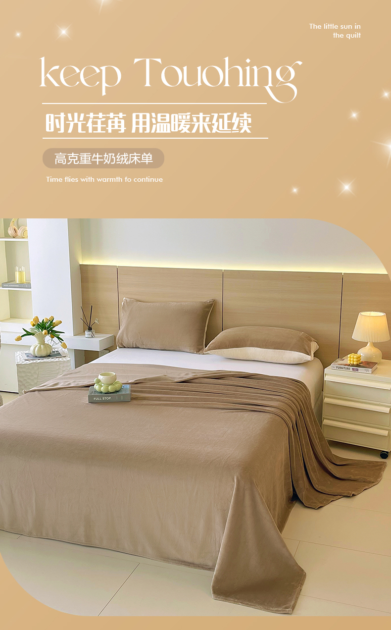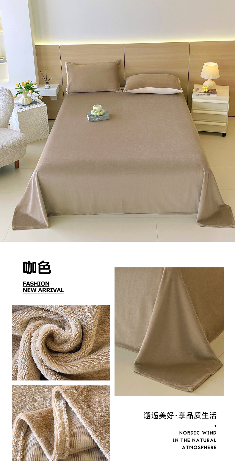 • 91家纺网 家纺一手货源 找家纺 小懒猪 2025年新款220克A类牛奶绒单床单 咖色
