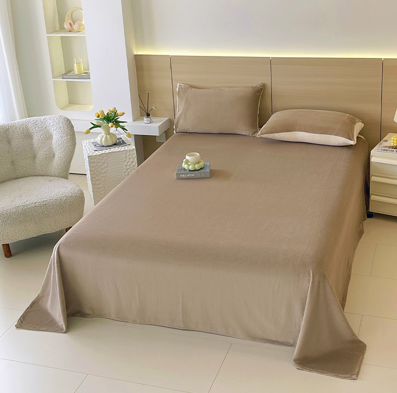 小懒猪 2025年新款220克A类牛奶绒单床单 咖色