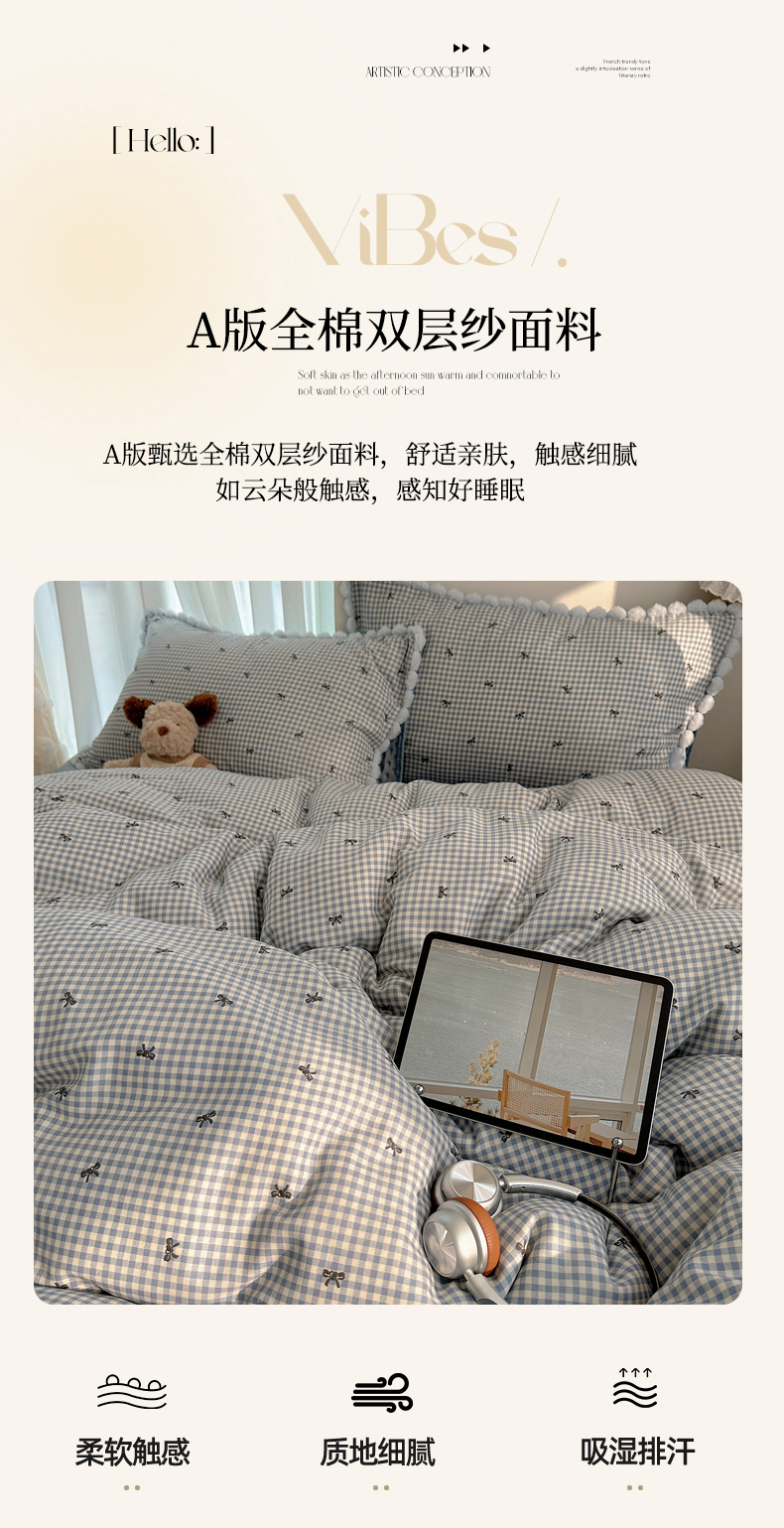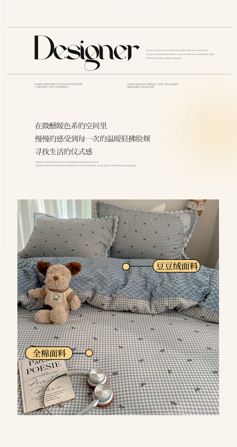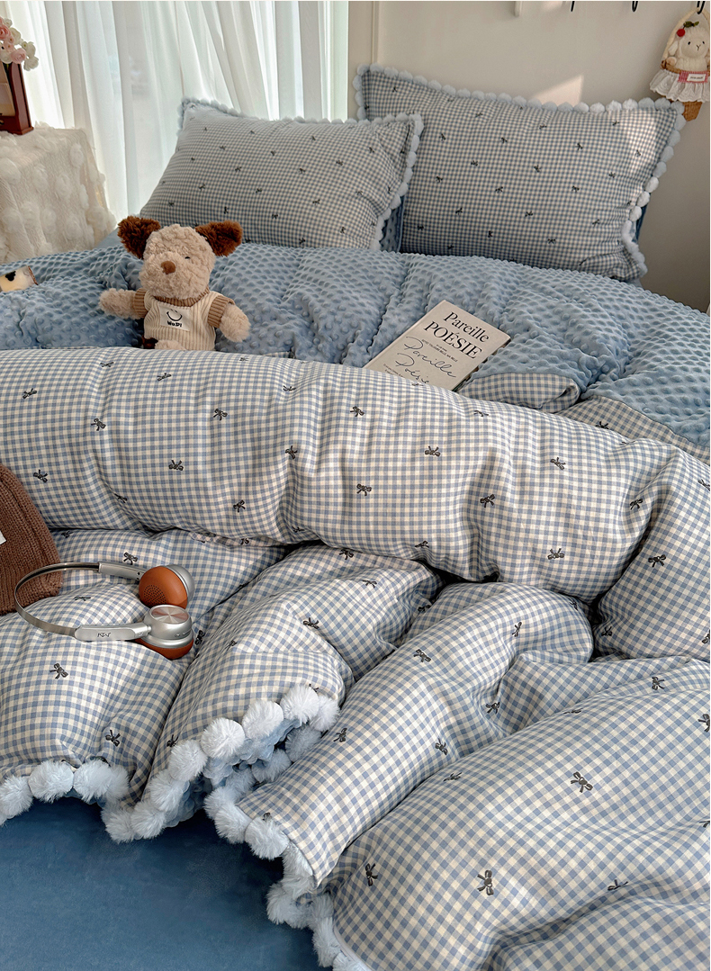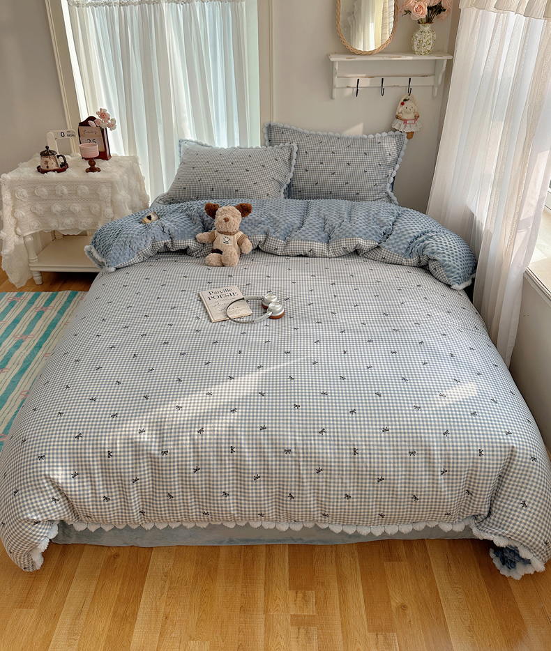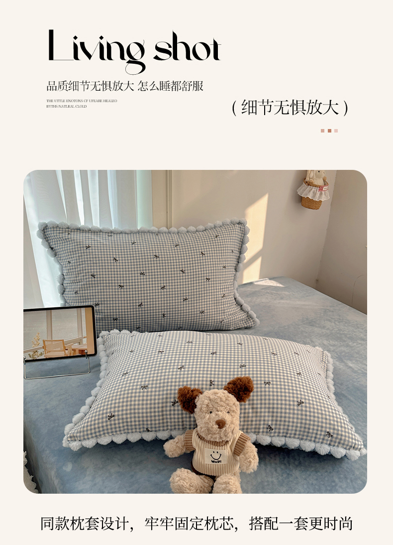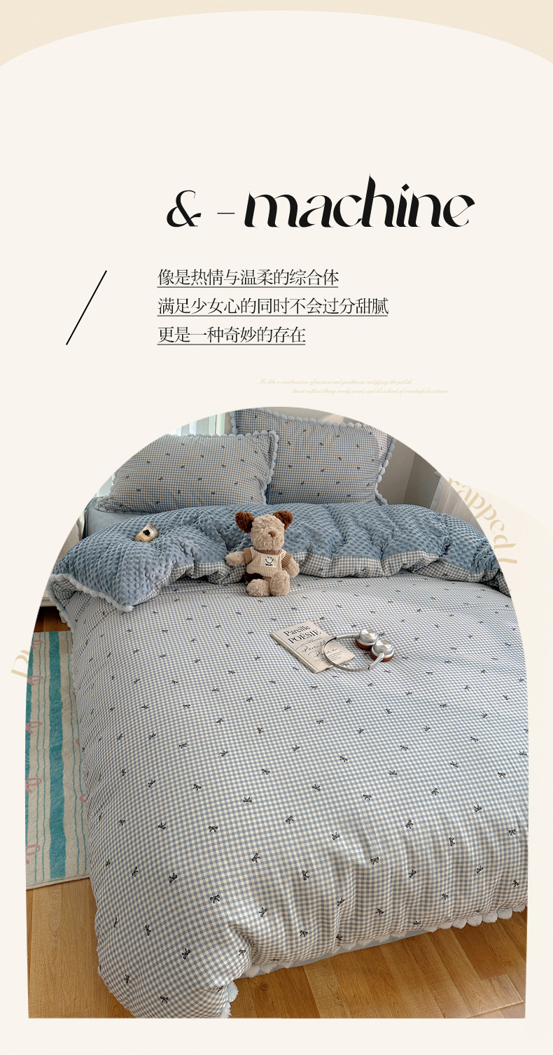 商品名称:Sweet dreams甜梦 2025新款双层纱豆豆绒棉加绒四件套 千颂伊蓝