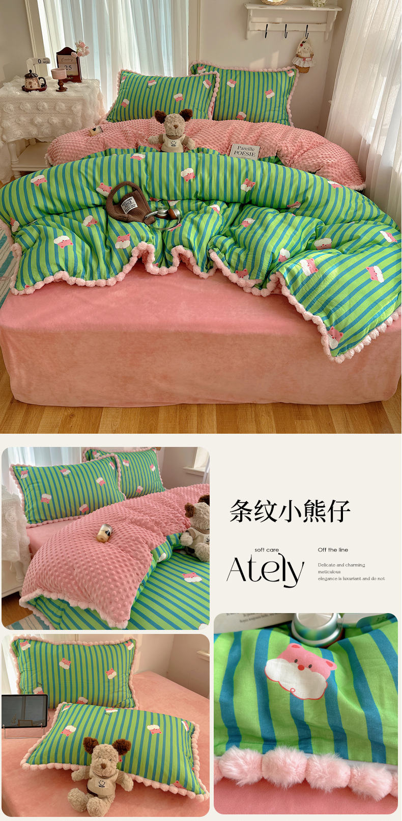 (总) Sweet dreams甜梦 2025新款A类双层纱豆豆绒棉加绒四件套,花梦时,童趣王国,温婉话语,郁金花海