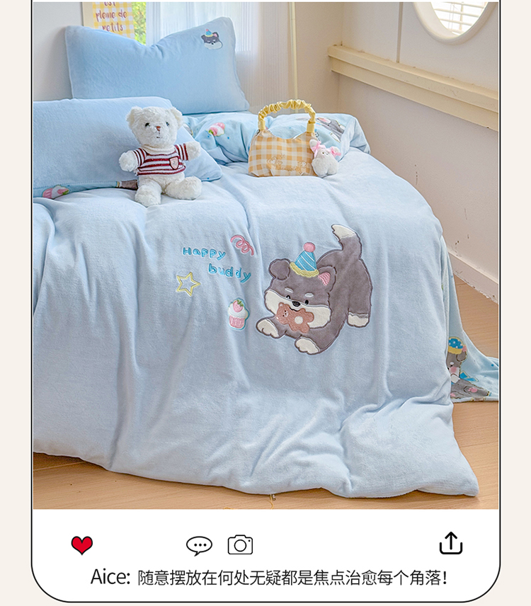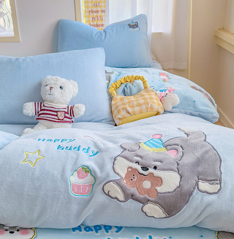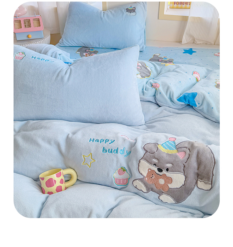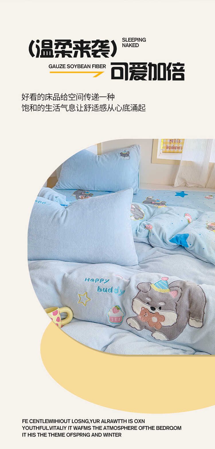 当前位置: 91家纺网 > 商品网购 > 床品套件 > 四件套 > 牛奶绒四件套 > 梦舒阳家纺 2025贴布绣牛奶绒四件套可爱卡通牛奶绒刺绣四件套量大优惠 萌萌狗