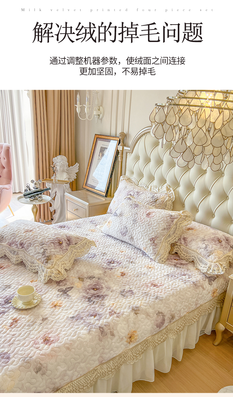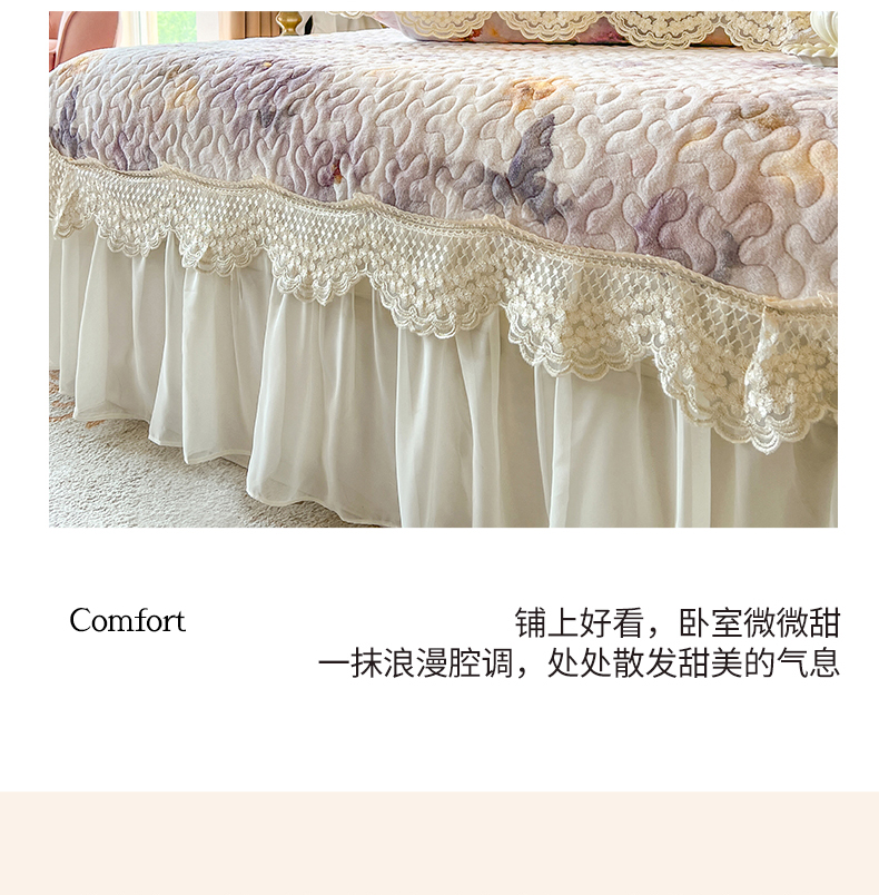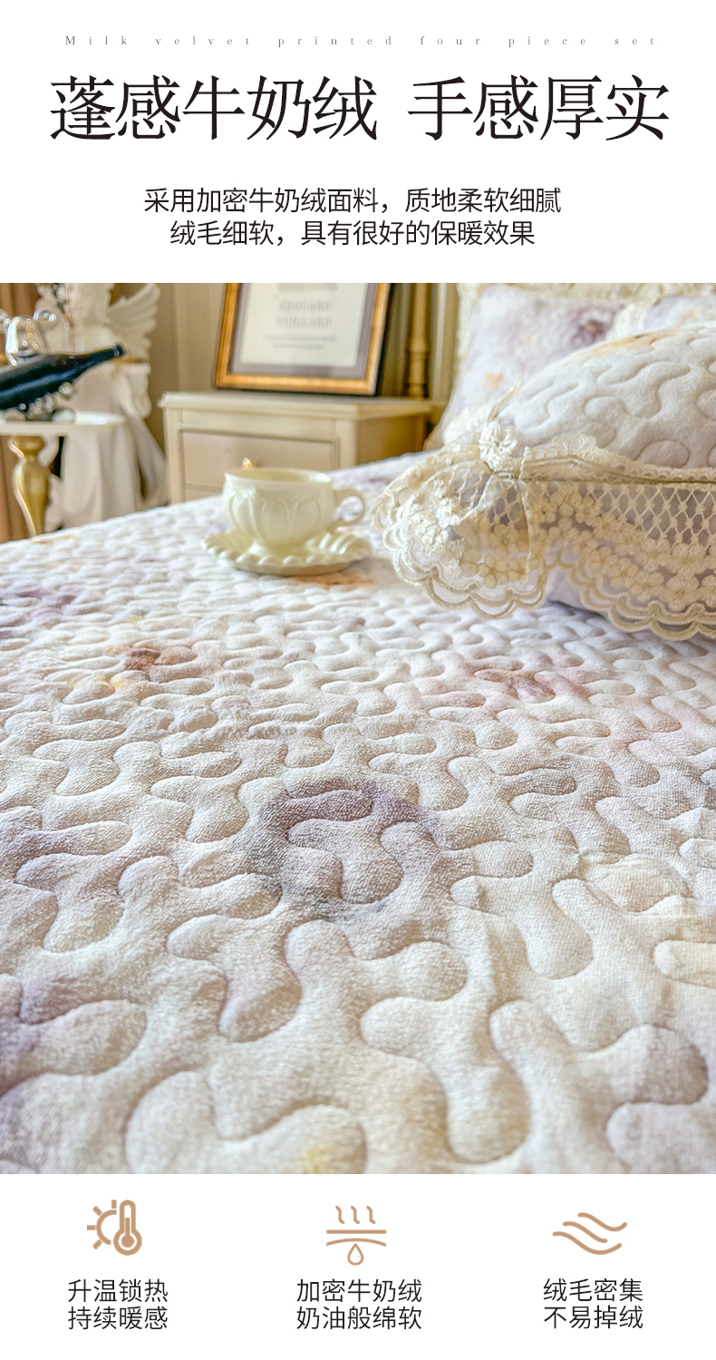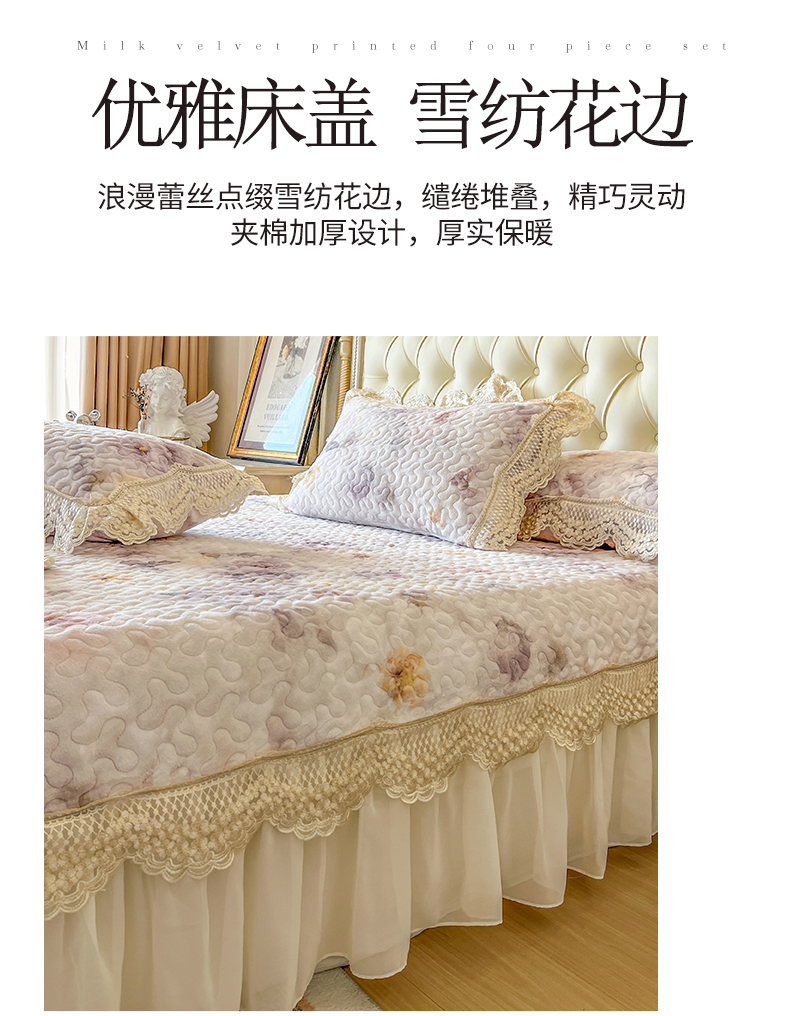 (总)网红馆(ck家纺) 2025新款亲肤舒适牛奶绒蕾丝边床裙四件套-秘密花园,秘密花园-粉色,秘密花园-卡其,秘密花园-米色,秘密花园-紫色