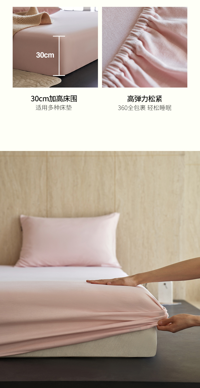 丽笙被芯 2025新款亲肤舒适阿瓦提针织全棉纯棉床笠单品床笠单件床笠 落霞粉