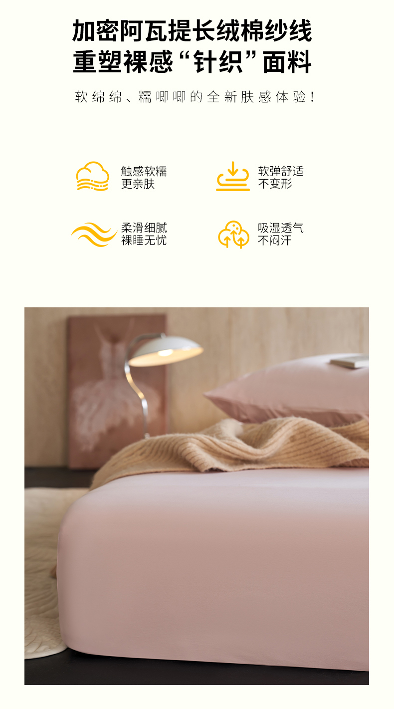 商品名称:丽笙被芯 2025新款亲肤舒适阿瓦提针织全棉纯棉床笠单品床笠单件床笠 落霞粉