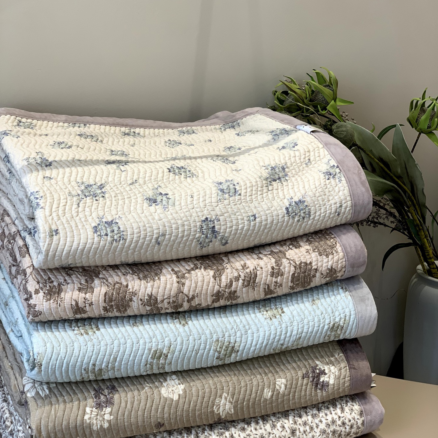 (总)汇庭 2025秋冬新·花边款单双人豆豆被系列,炊烟,萌芽,组合图仅供参考,桃花溪,山海绿,山海蓝,莫尼卡,可可草莓,静香,海花岛