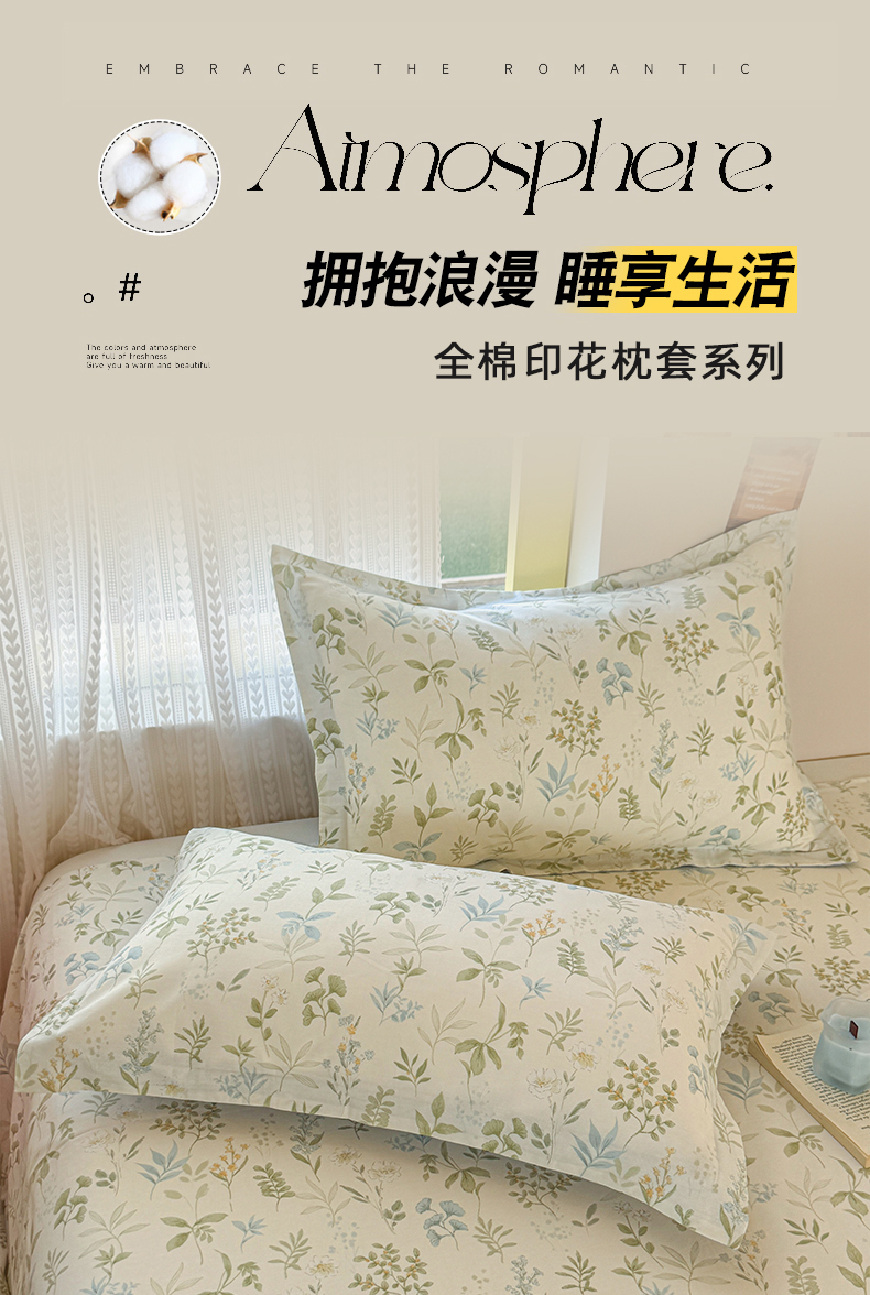 尚帛 2026新款全棉品质喷气印花爆款四件套 多规格套件 单品系列-单枕套 浅草繁花