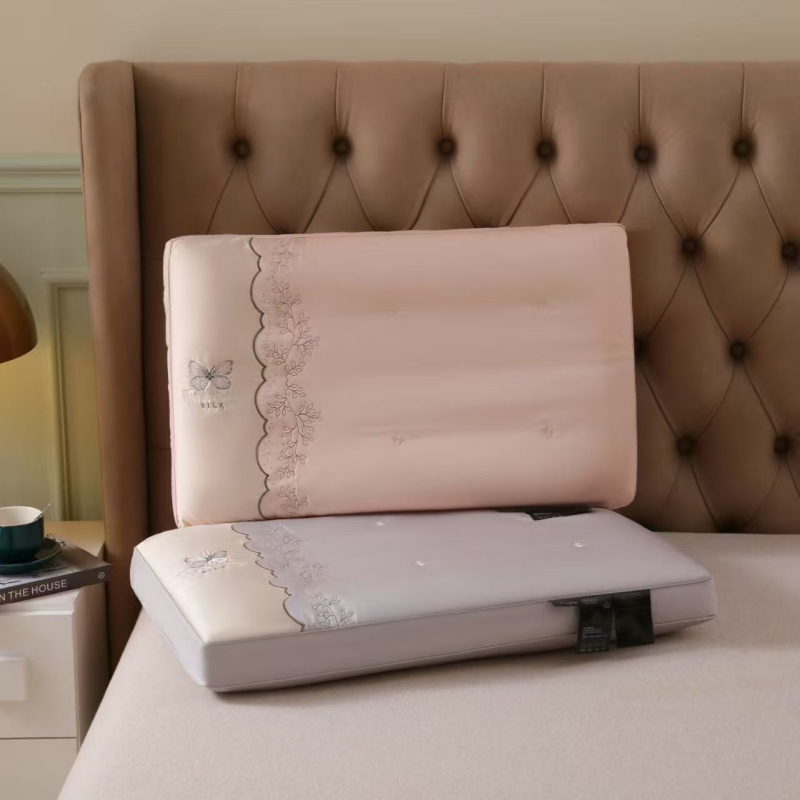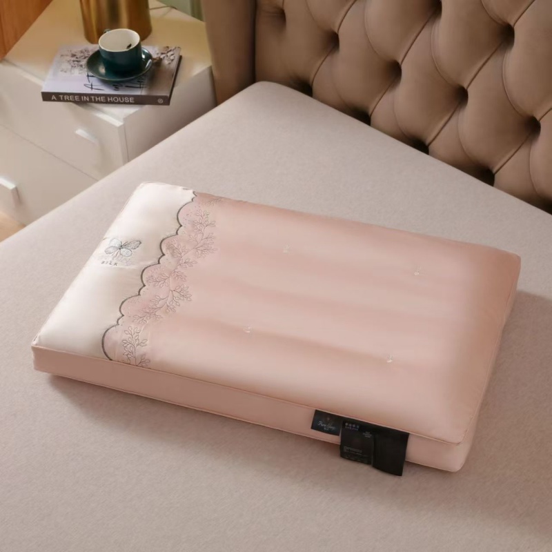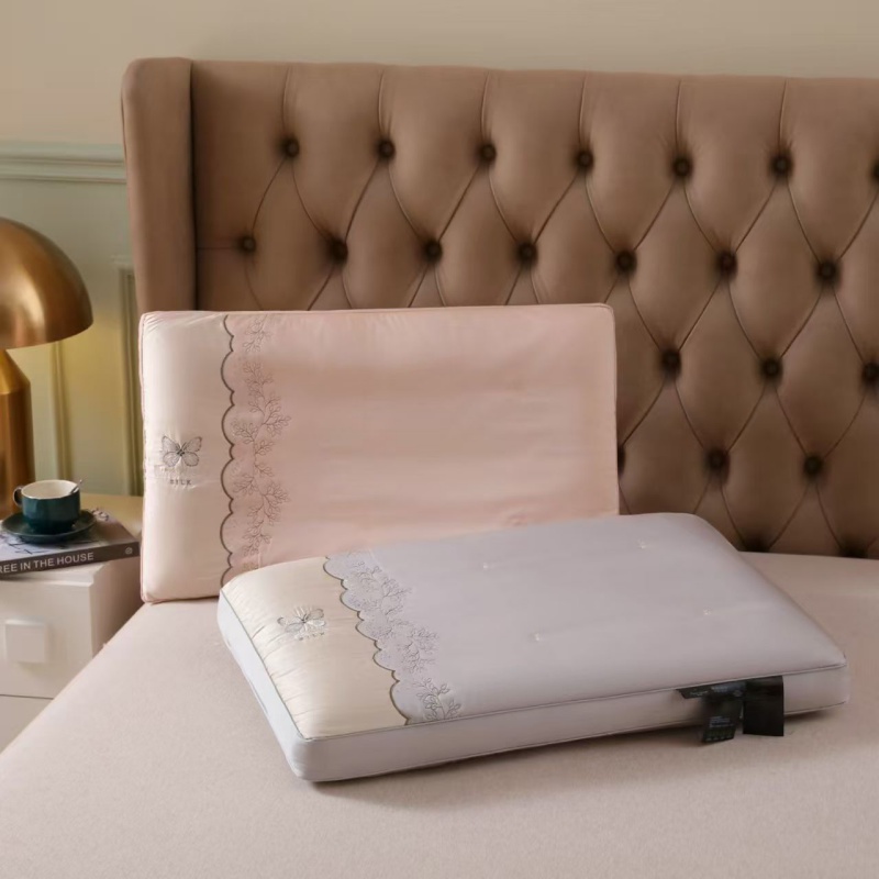商品名称:云熙枕业 2025新款云丝绣花高端大气羽丝护颈枕 枕头枕芯 灰色
