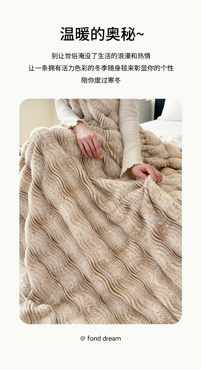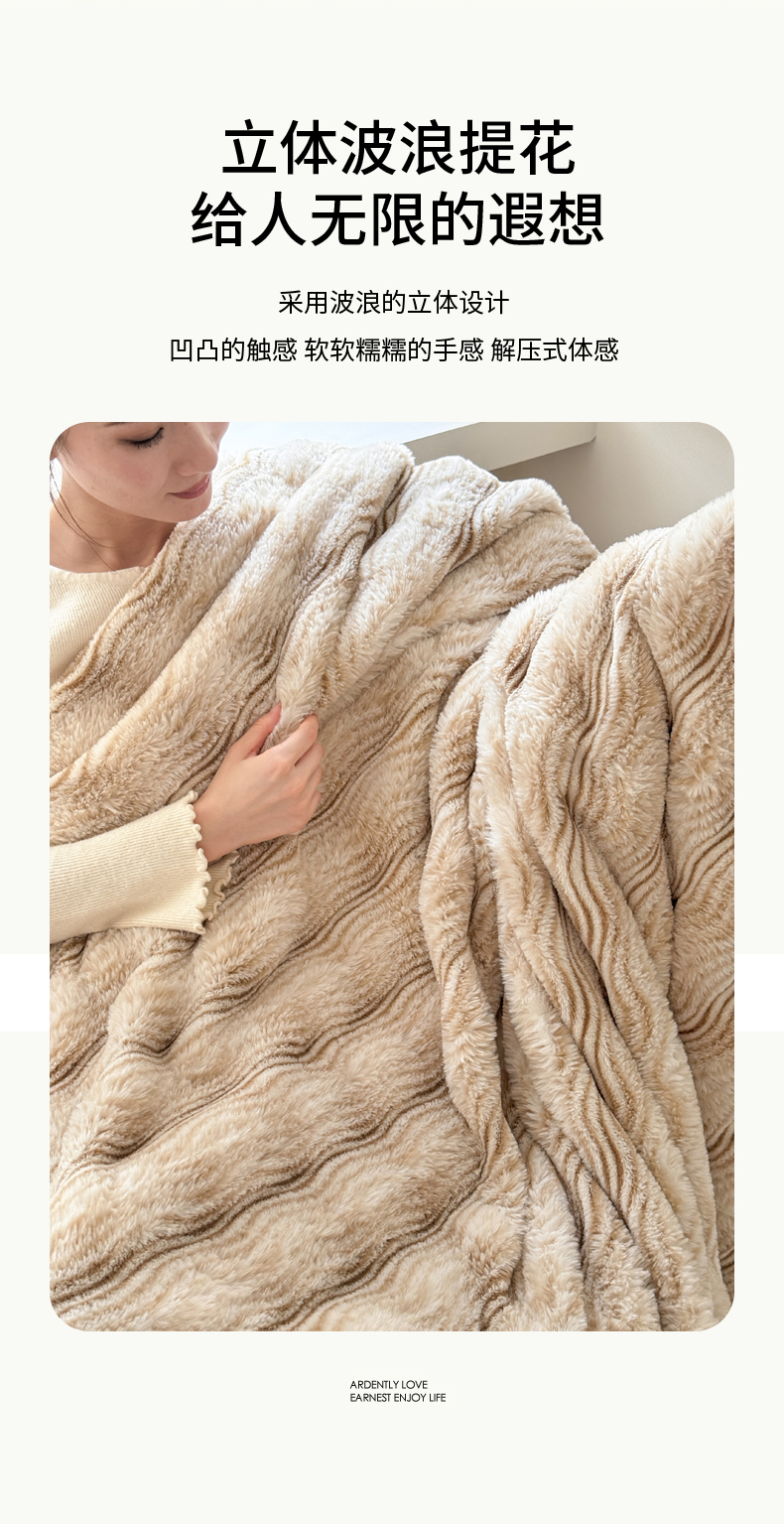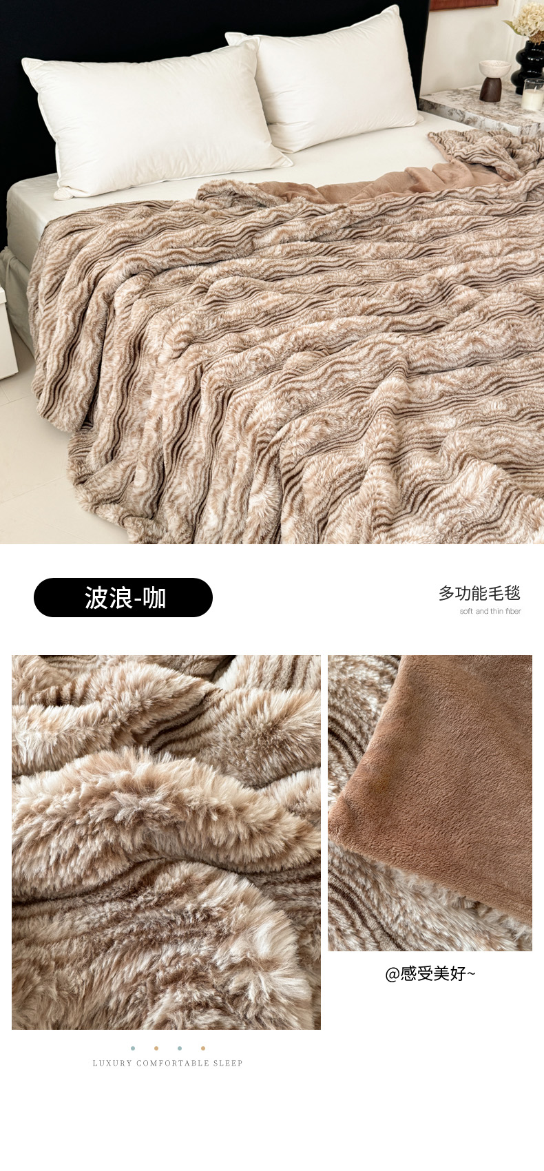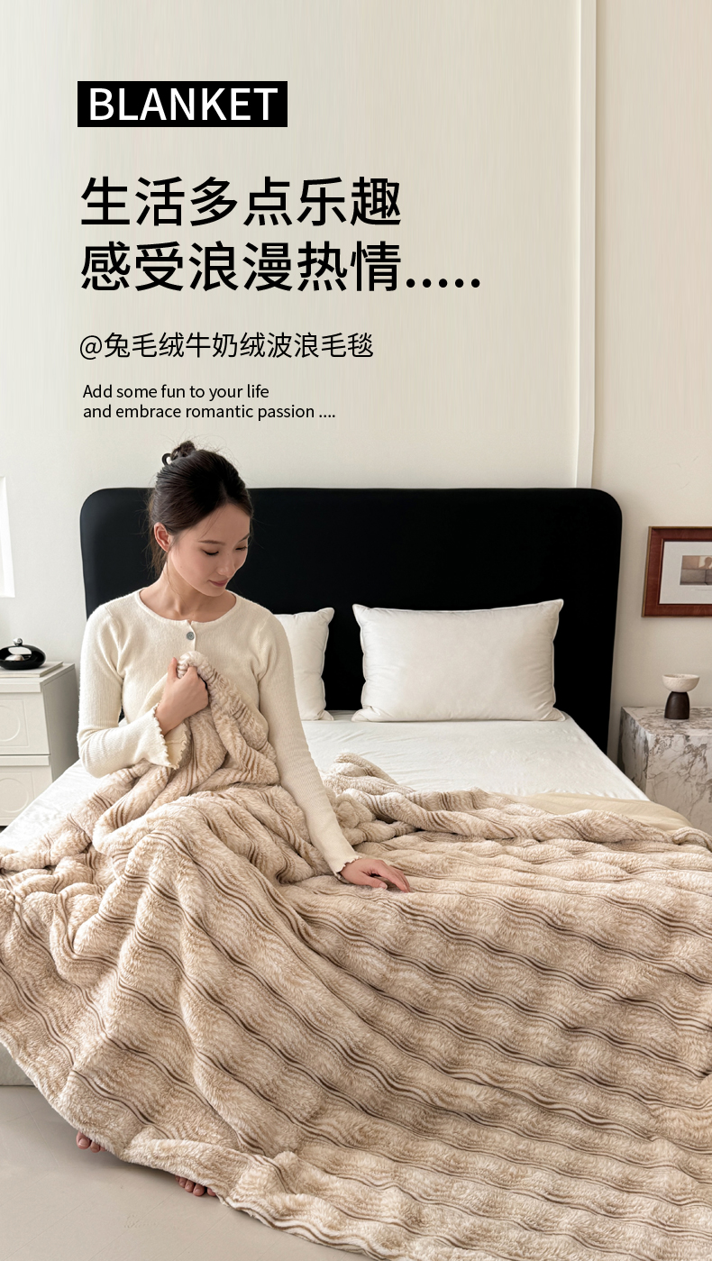 丹本家纺 2025新款加厚大兔毛牛奶绒多功能盖毯毛毯毯子 波浪-驼