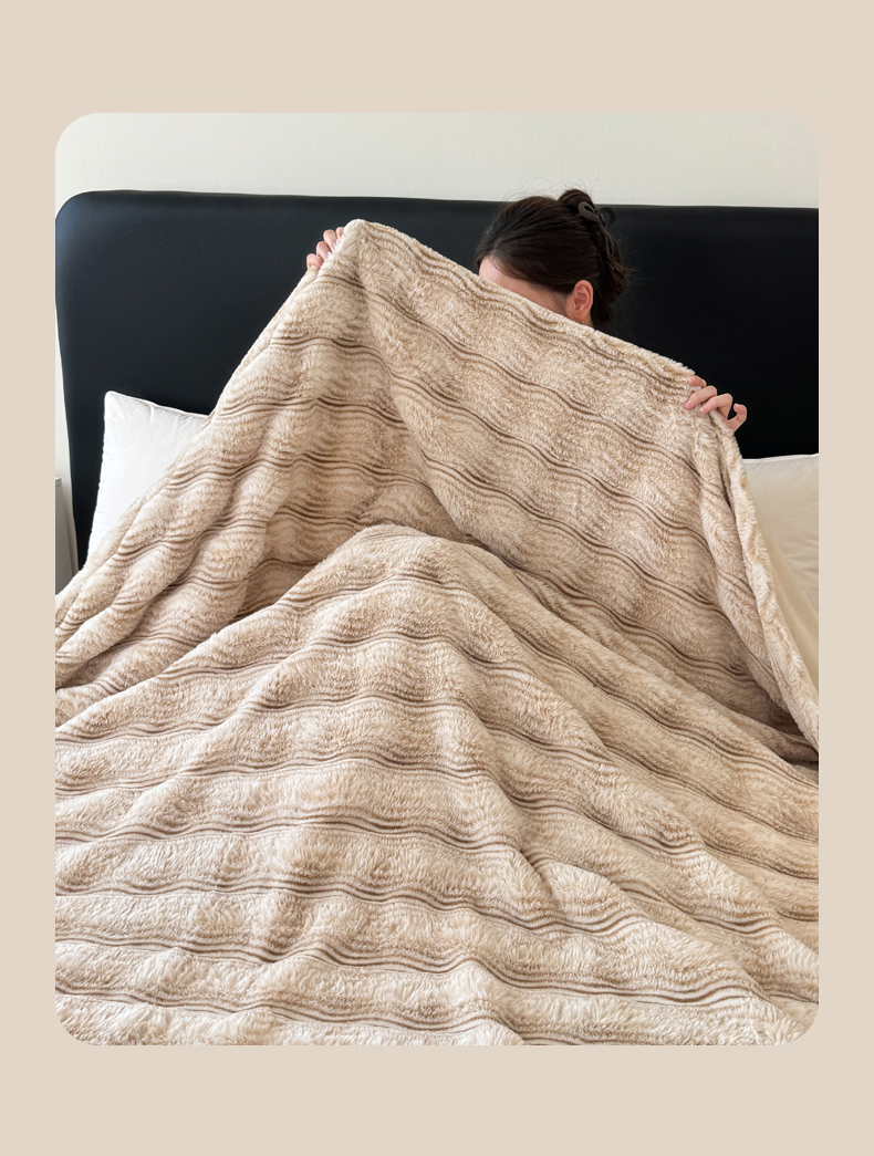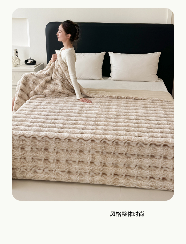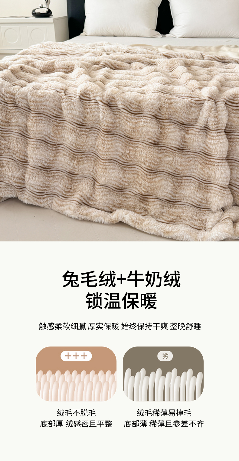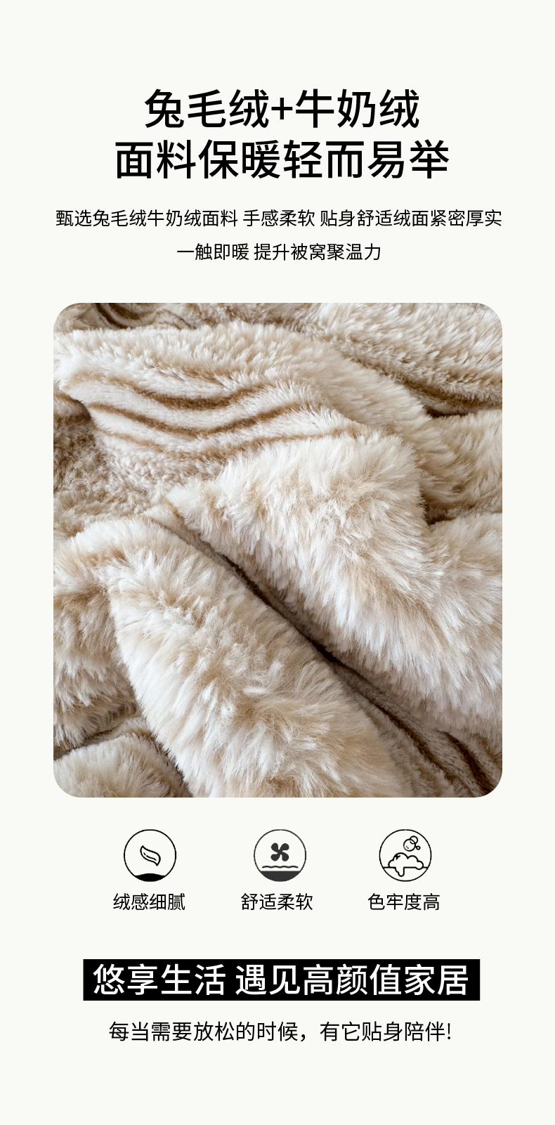 丹本家纺 2025新款加厚大兔毛牛奶绒多功能盖毯毛毯毯子 波浪-驼