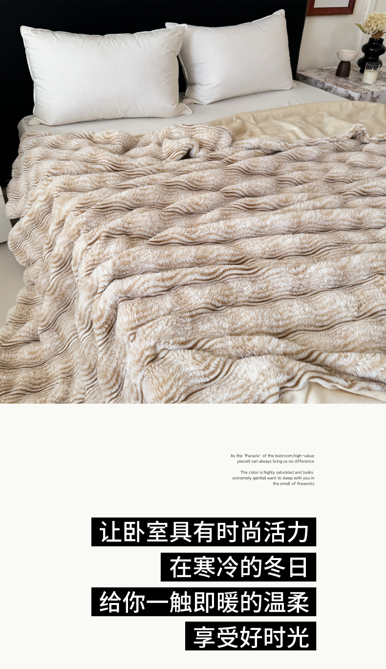 商品名称:丹本家纺 2025新款加厚大兔毛牛奶绒多功能盖毯毛毯毯子 波浪-驼