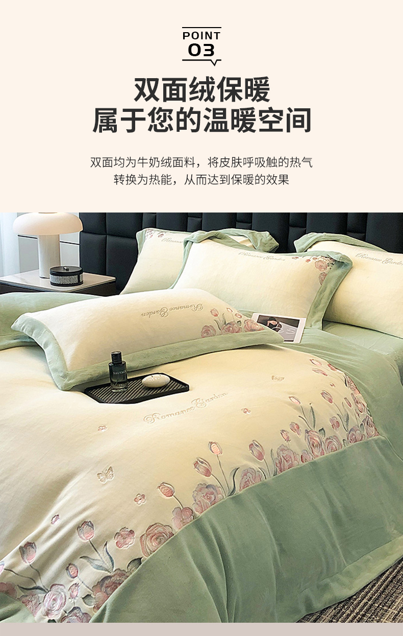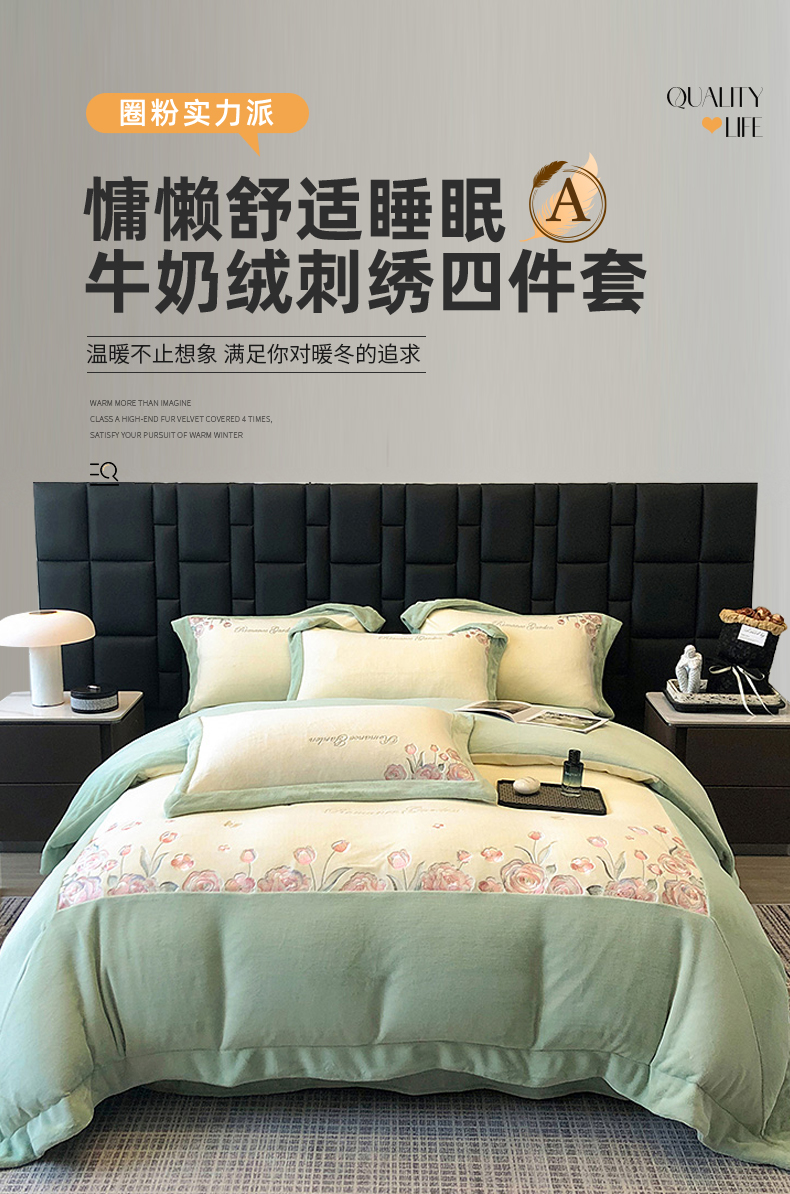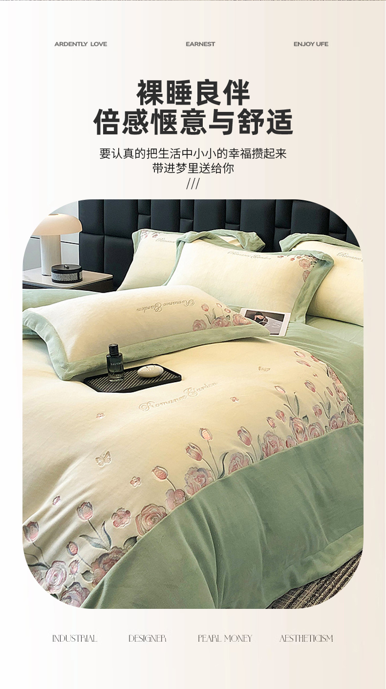 (总)家居1号家纺 2025新款230克A类牛奶绒双拼刺绣四件套-兰黛(控价券后不得低于238元 会员优惠10元),兰黛-浅绿,兰黛-少女粉,兰黛-温馨蓝,兰黛-紫豆沙