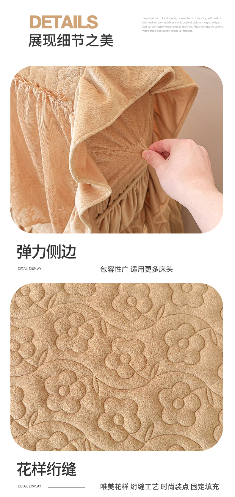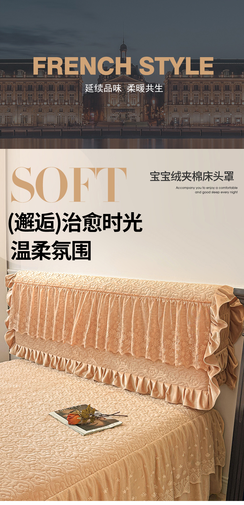 商品名称:情恒家纺 2025新款宝宝绒夹棉单品床头罩床头罩单件 玫瑰盛典-暖驼色