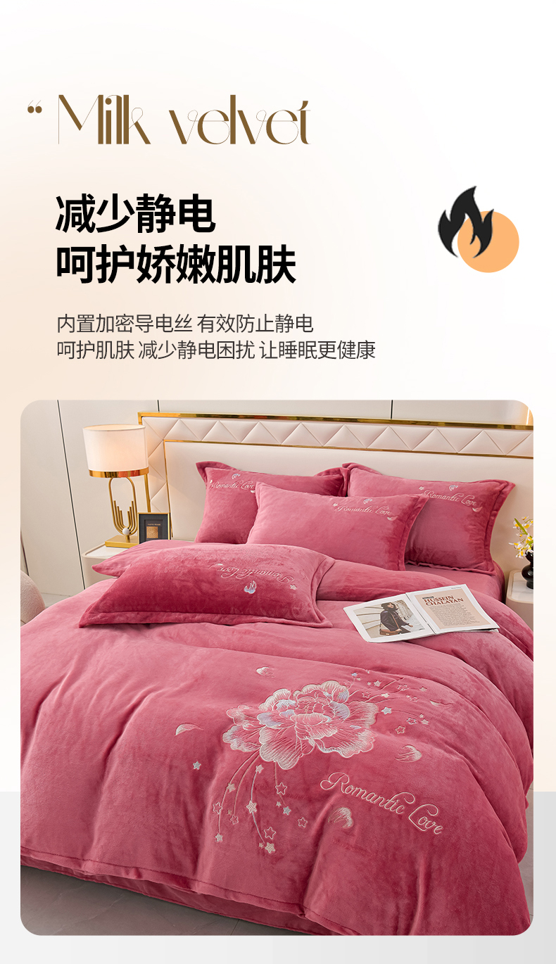 商品名称:绒小宣 2025新款加厚牛奶绒刺绣花保暖四件套-花开富贵提供买家秀 花开富贵-豆沙色