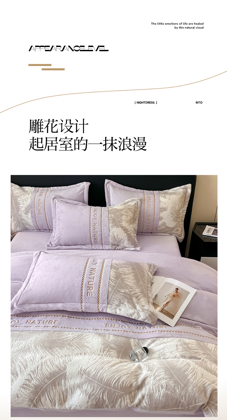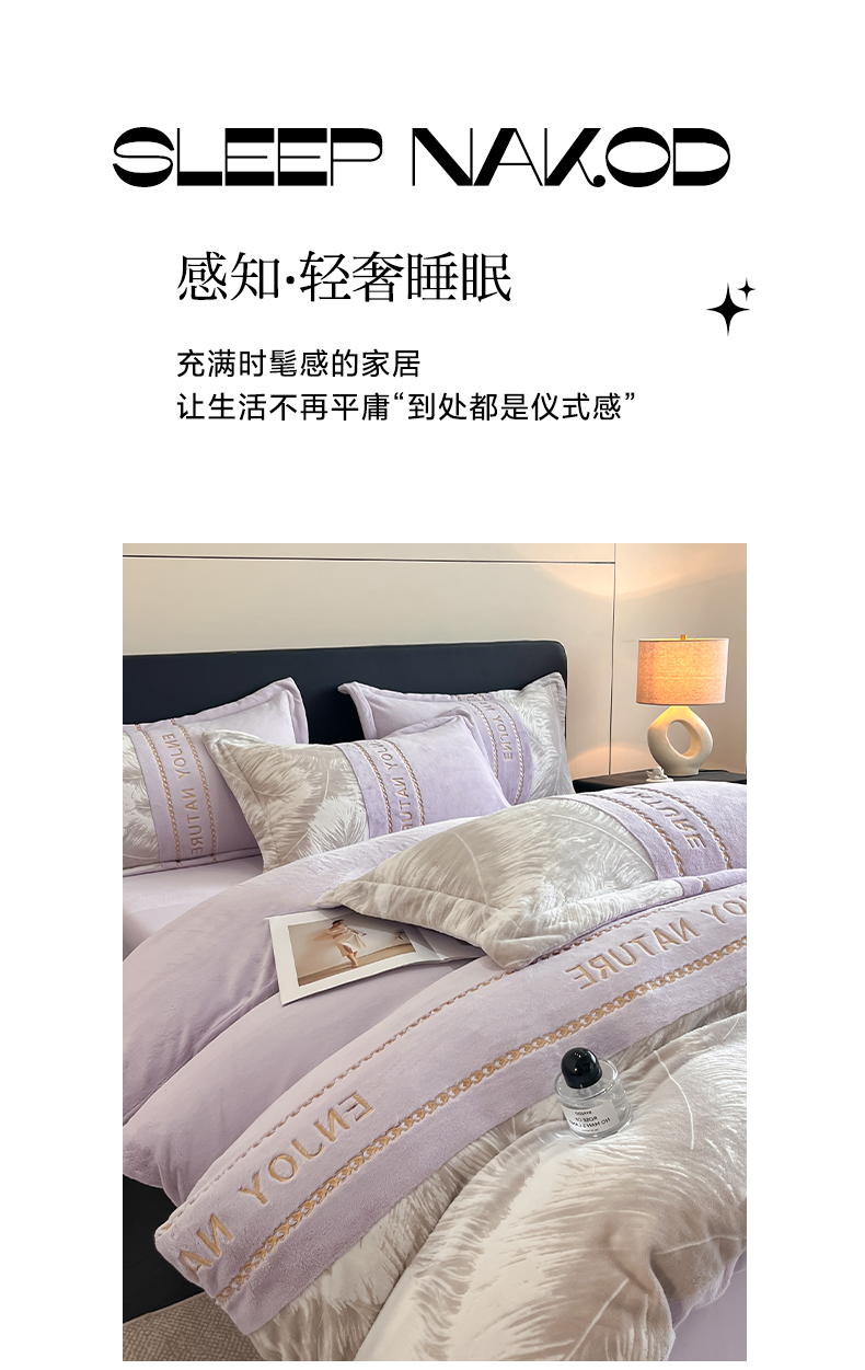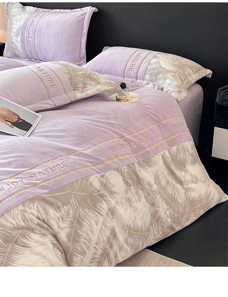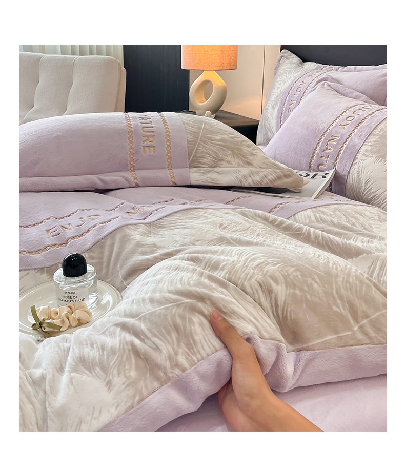当前位置: 91家纺网 > 商品网购 > 床品套件 > 四件套 > 牛奶绒四件套 > 博纳家纺 2025新款加厚牛奶绒雕花刺绣四件套-飞羽 控价劵后168(严格按控价来) 飞羽-浅紫