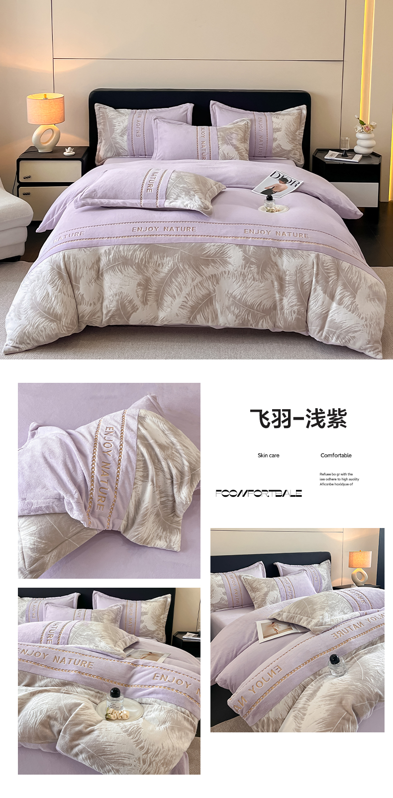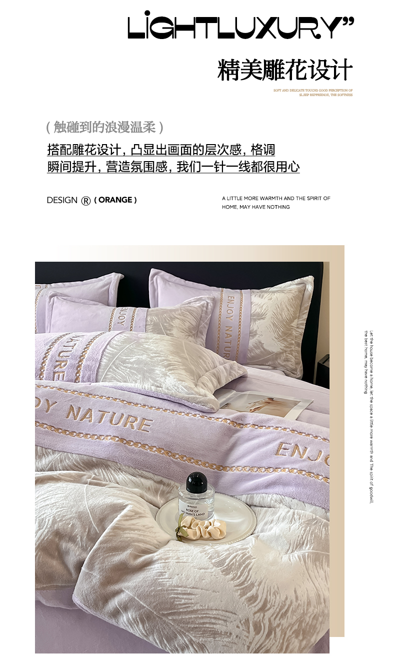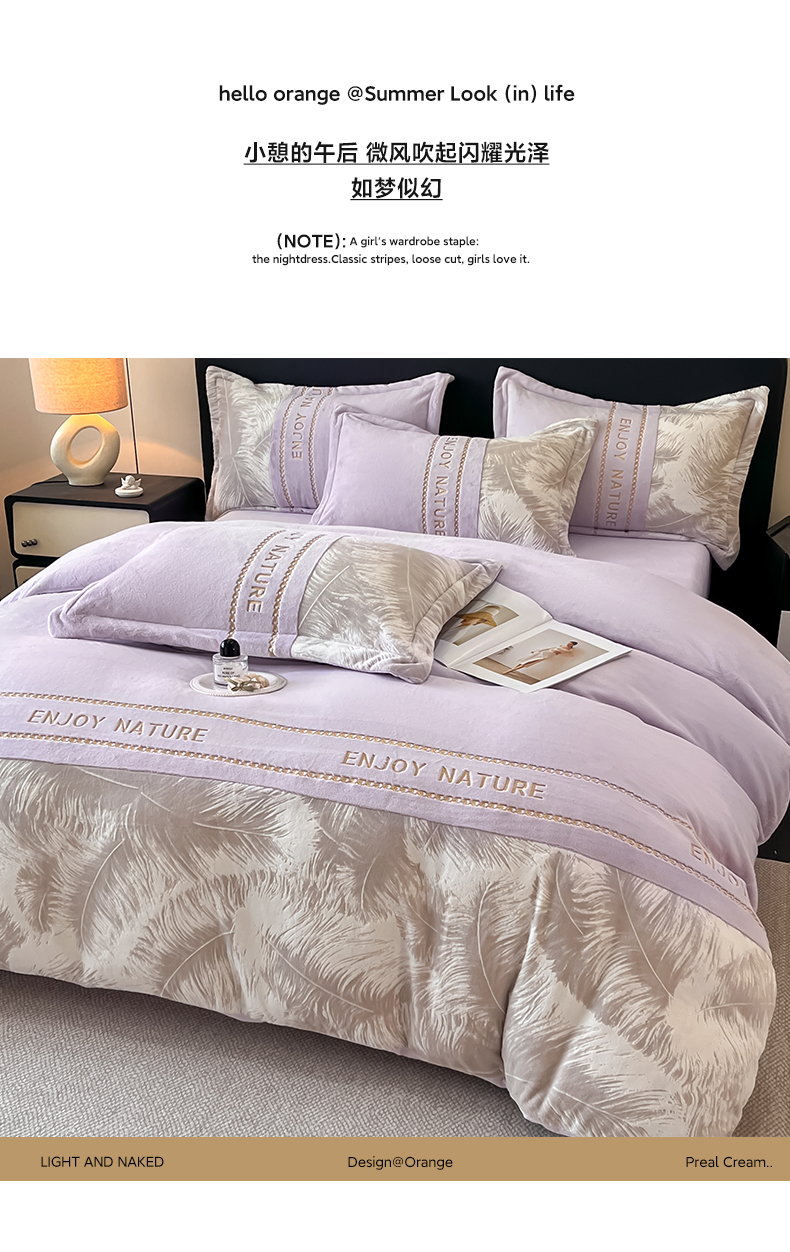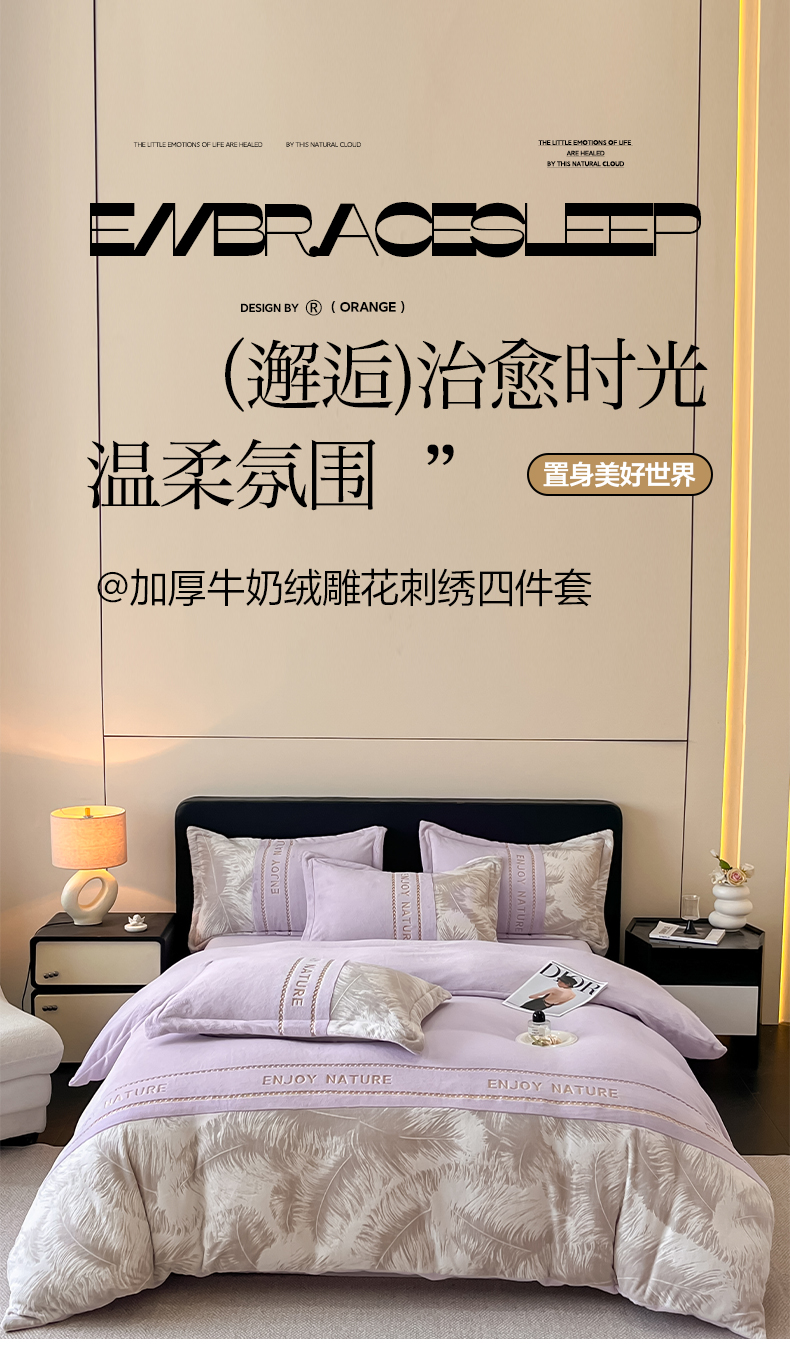 当前位置: 91家纺网 > 商品网购 > 床品套件 > 四件套 > 牛奶绒四件套 > 博纳家纺 2025新款加厚牛奶绒雕花刺绣四件套-飞羽 控价劵后168(严格按控价来) 飞羽-浅紫