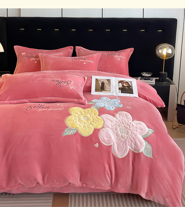 (总)绒小宣 2025新A类牛奶绒贴布绣四件套-花语,花语-浅粉,花语-宝石蓝,花语-豆沙色,花语-抹茶绿,花语-浅夏紫,花语-清新橙,花语-芍药粉,花语-天空兰