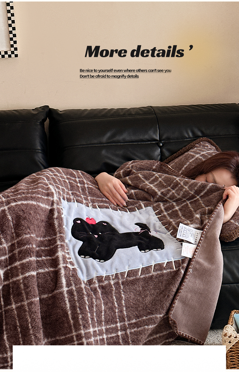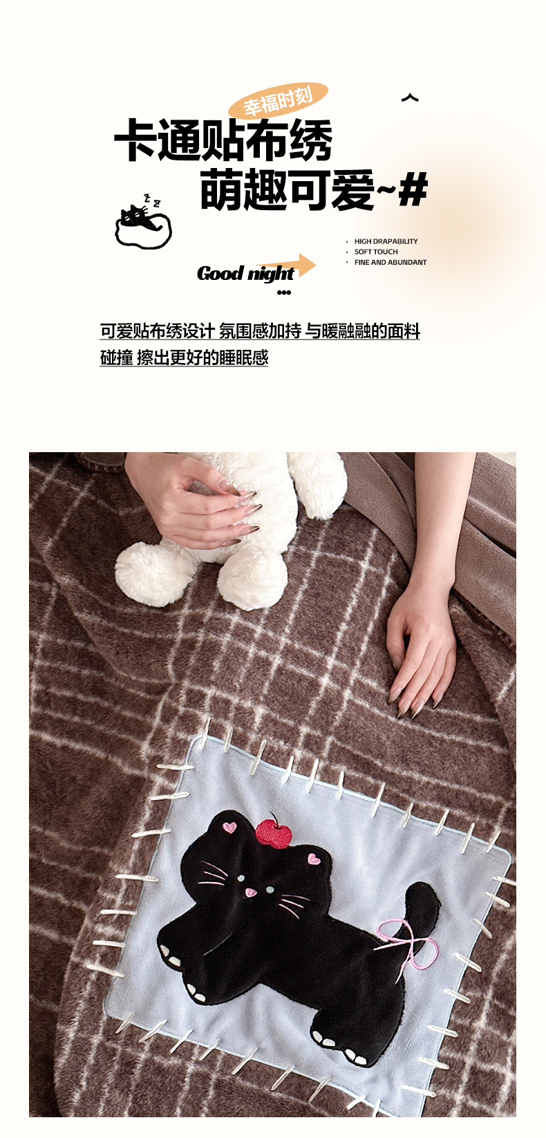 (总)宇航家纺 2025新款美拉德色系仿羊毛绒牛奶绒毛毯盖毯办公毯,盖毯-煤球小猫,盖毯-呆萌猫咪,盖毯-福宝小狗,盖毯-三只小猫