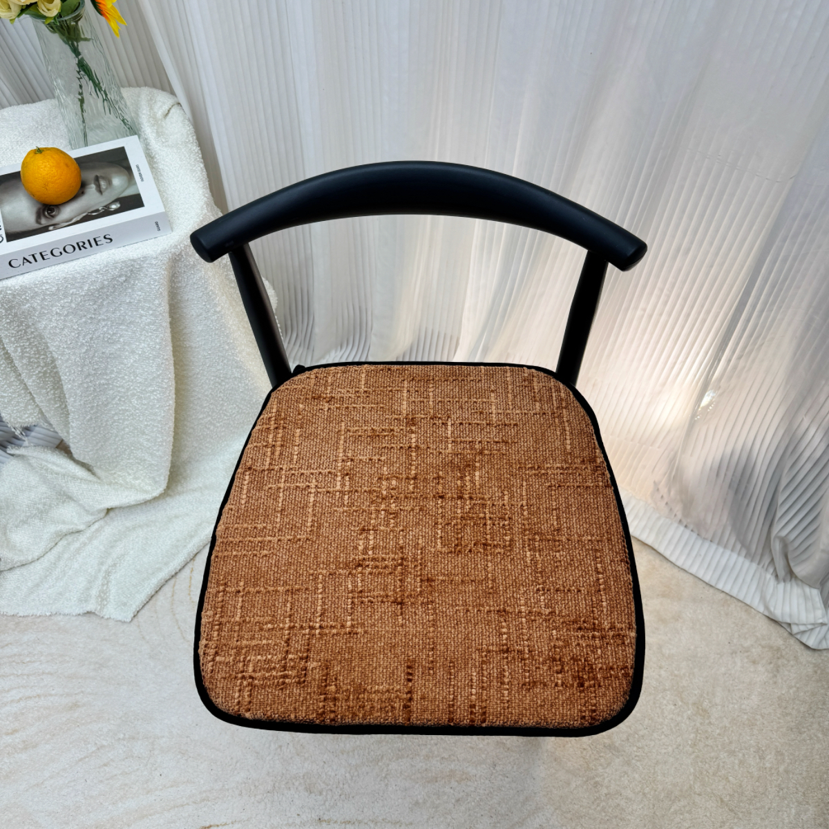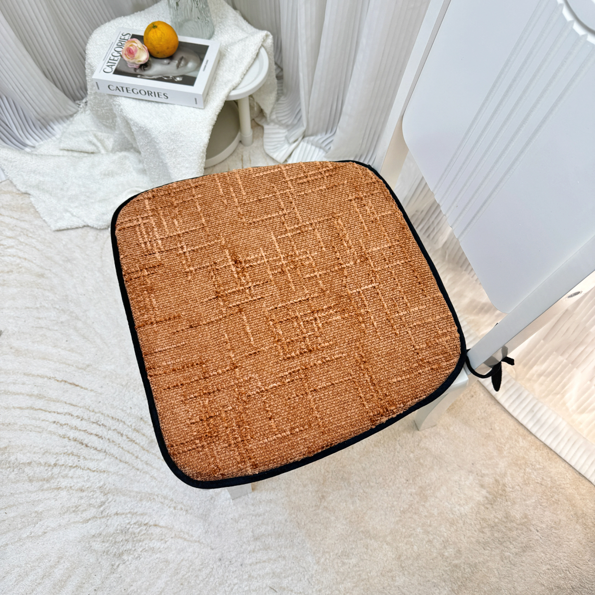 商品名称:爱家居 2025新款餐椅垫坐垫轻奢马蹄形四季通用雪尼尔防滑纯色椅子垫餐厅家用可拆洗【纯色雪尼尔坐垫常规有现货、其它规格可定制】 雪尼尔—焦糖橘