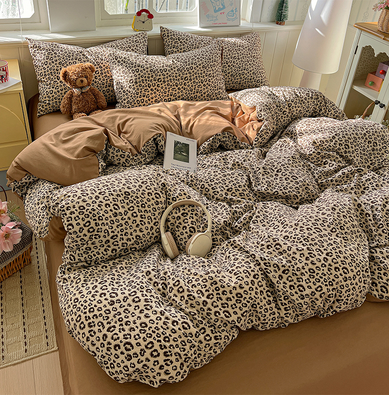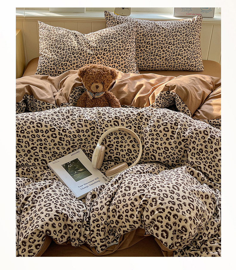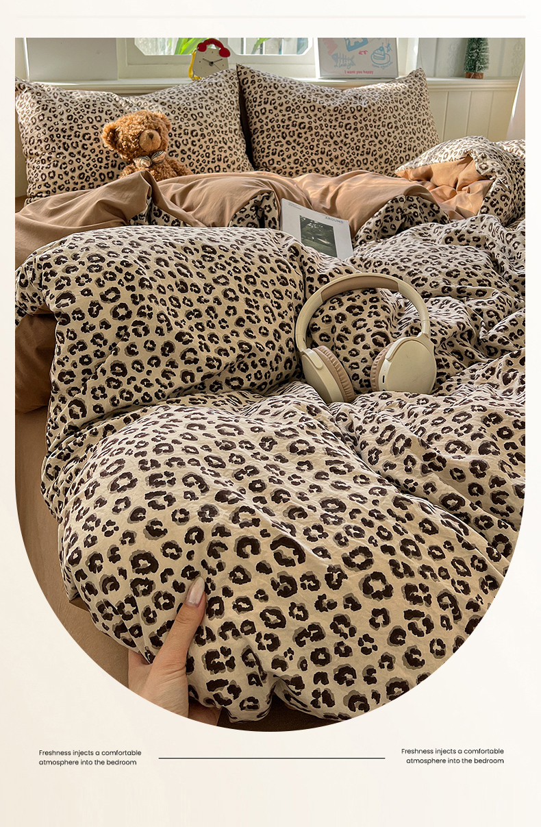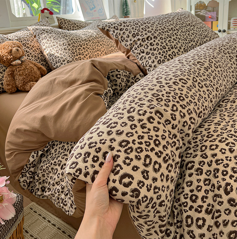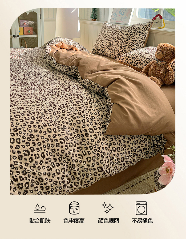 当前位置: 91家纺网 > 商品网购 > 床品套件 > 四件套 > 水洗棉四件套 > 凯洛奇 2026新款A类仿棉四件套古法水洗棉小清新印花四件套单被套系列 豹纹