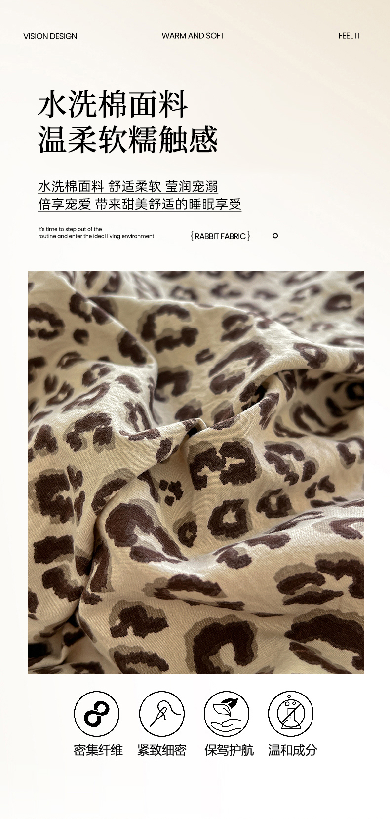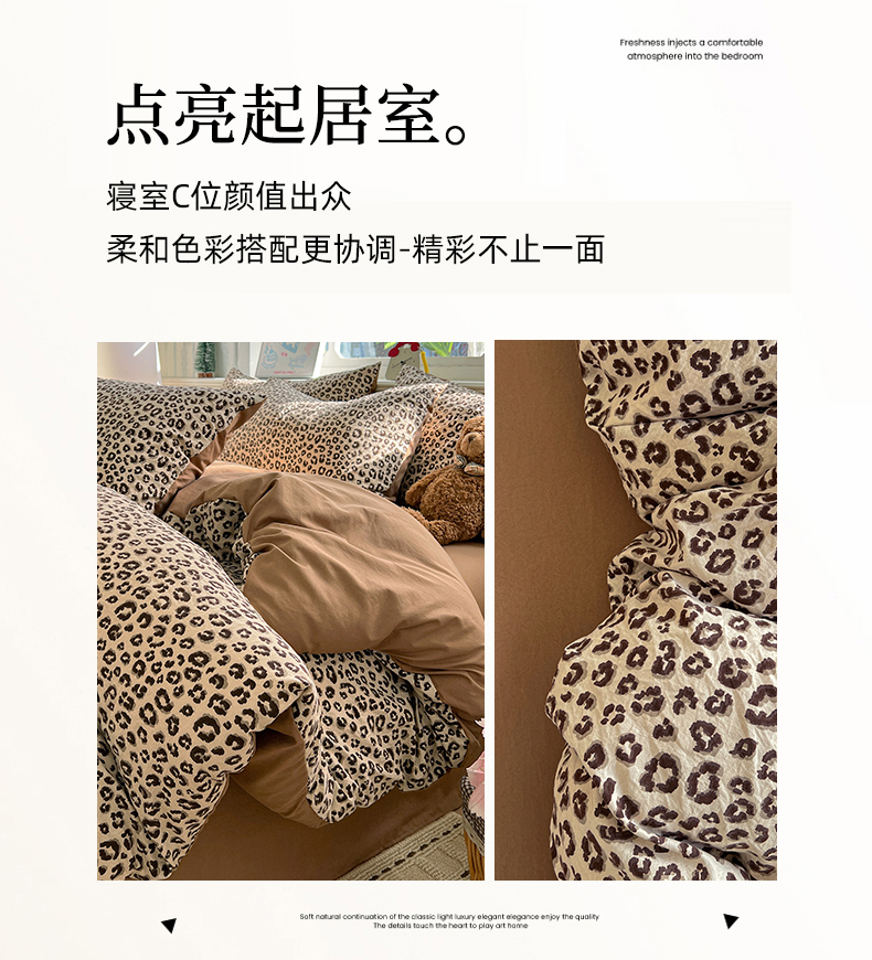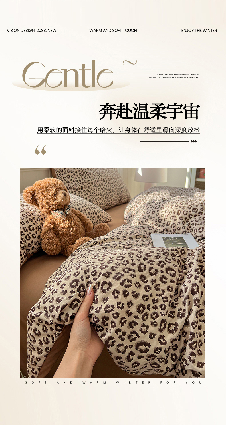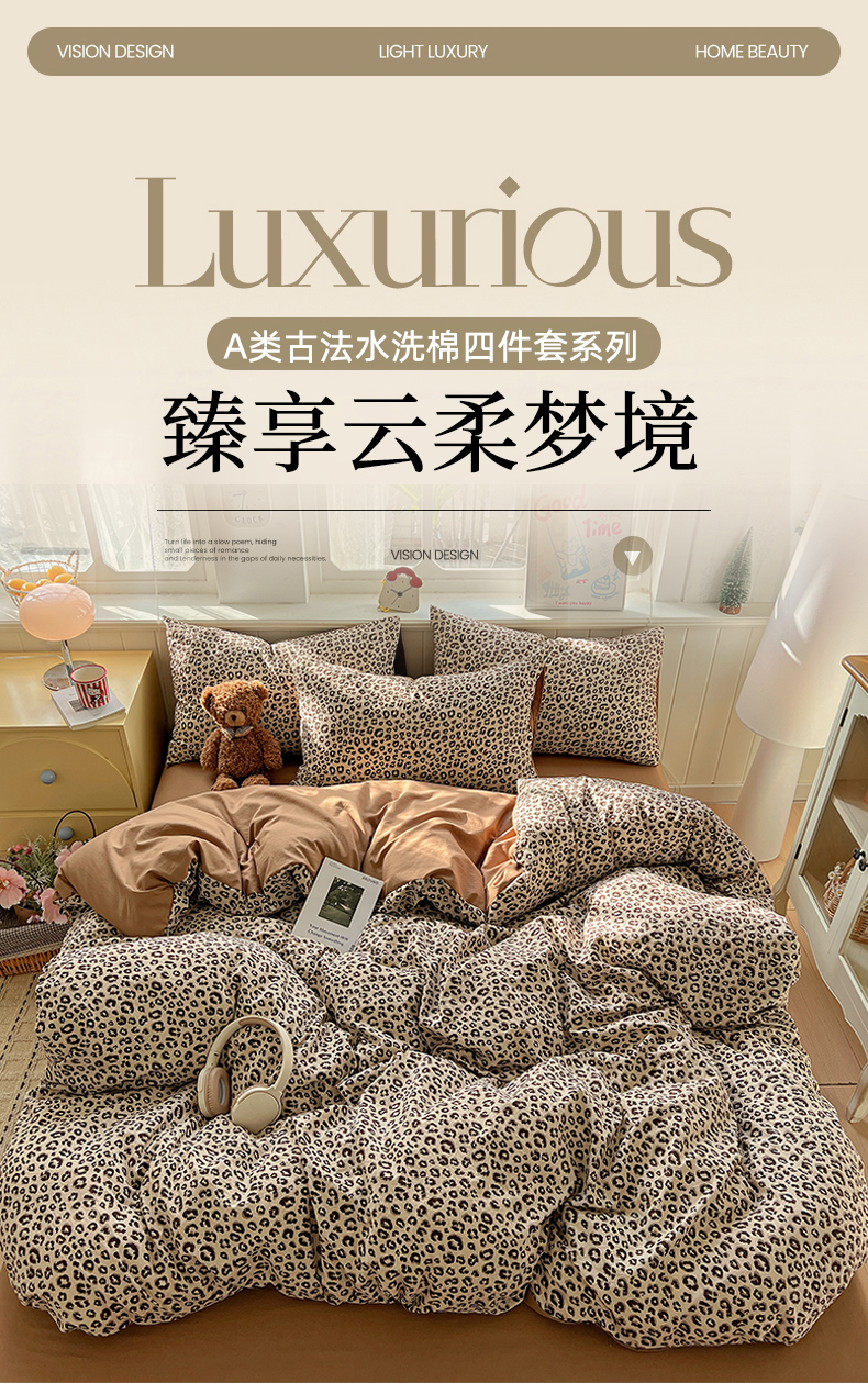 当前位置: 91家纺网 > 商品网购 > 床品套件 > 四件套 > 水洗棉四件套 > 凯洛奇 2026新款A类仿棉四件套古法水洗棉小清新印花四件套单被套系列 豹纹