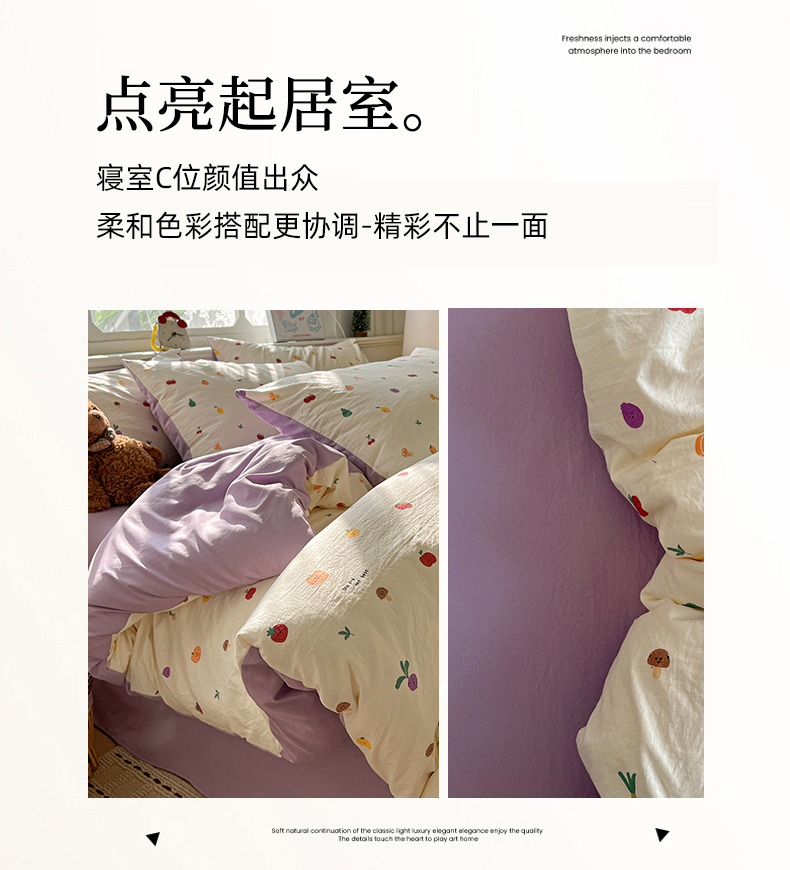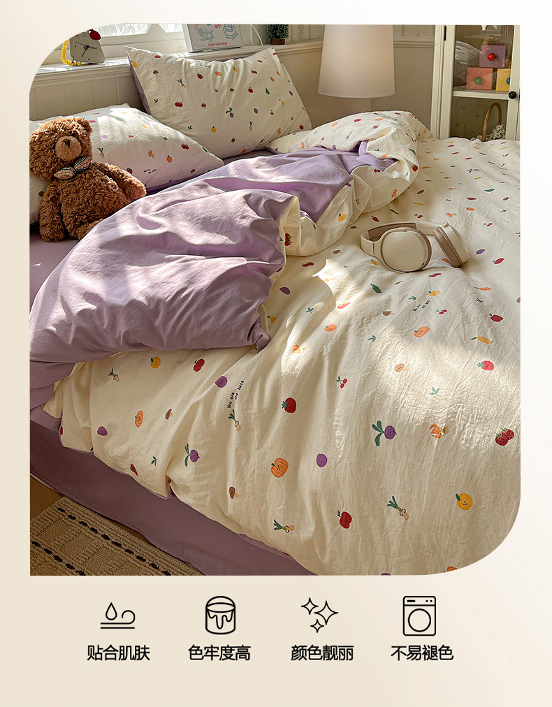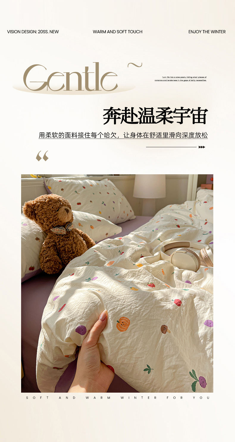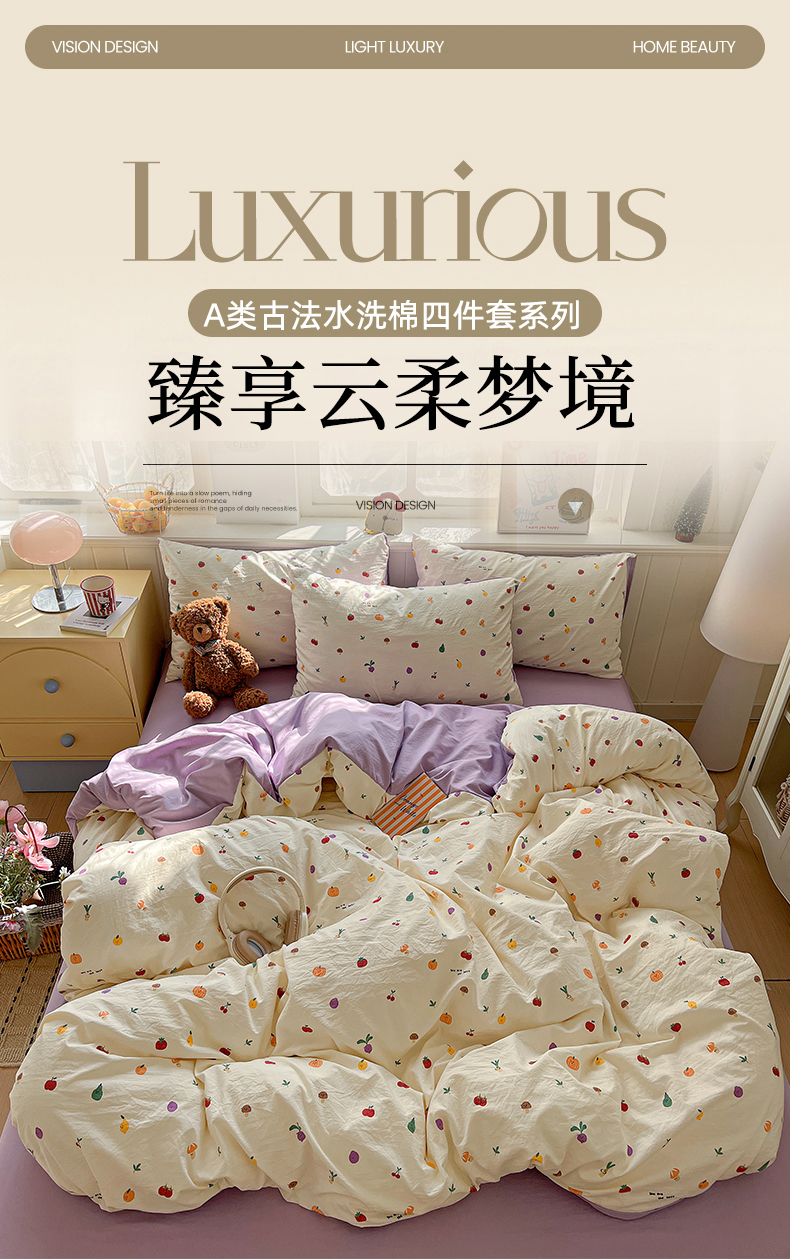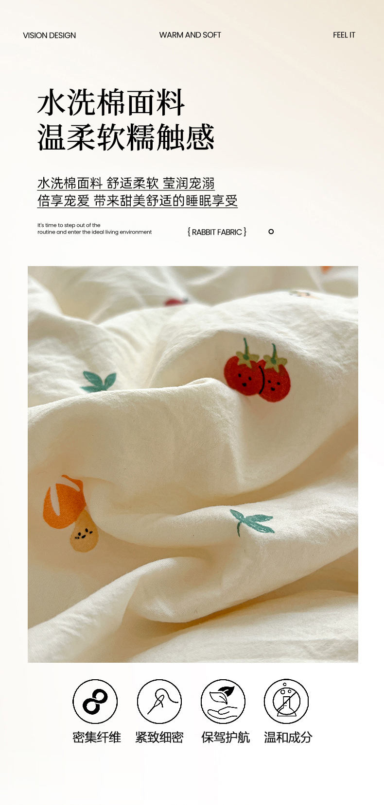 当前位置: 91家纺网 > 商品网购 > 床品套件 > 四件套 > 水洗棉四件套 > 凯洛奇 2026新款A类仿棉四件套古法水洗棉小清新印花四件套单被套系列 满园春色