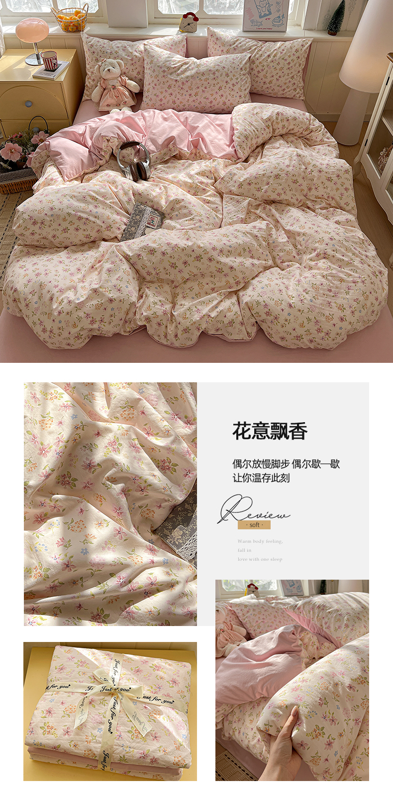 当前位置: 91家纺网 > 商品网购 > 床品套件 > 四件套 > 水洗棉四件套 > 凯洛奇 2026新款A类仿棉四件套古法水洗棉小清新印花四件套单被套系列 晚枫
