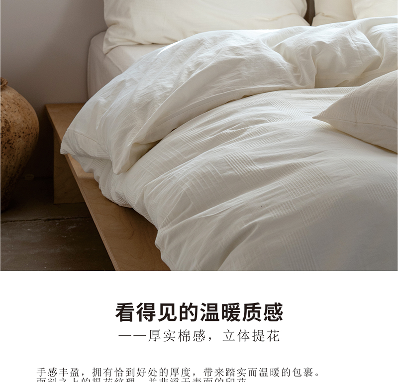 当前位置: 91家纺网 > 商品网购 > 床品套件 > 四件套 > 全棉普通四件套 > (总)明治西川 素棉水洗加厚四件套全棉提花日系慵懒风民宿酒店床品纯白YKK拉链