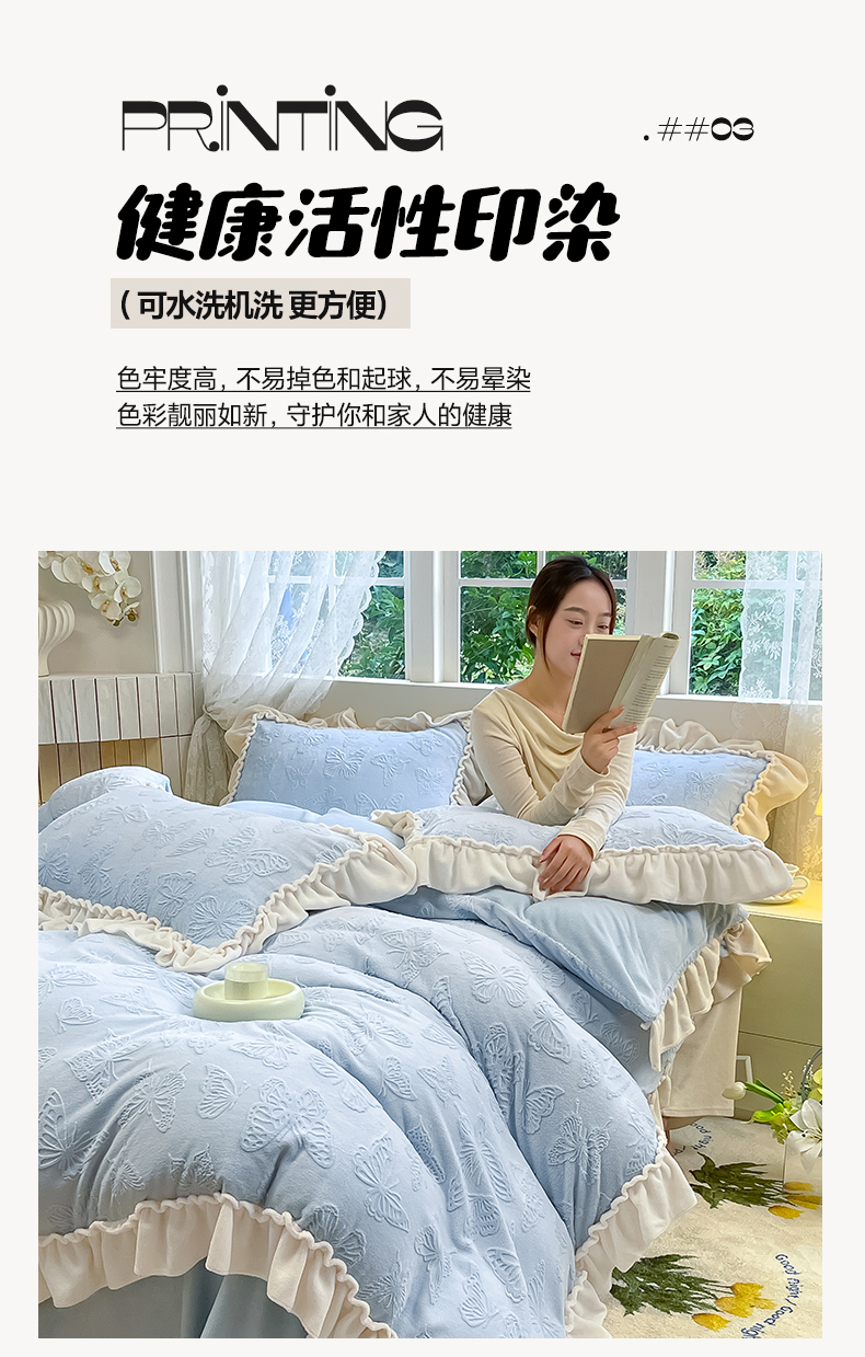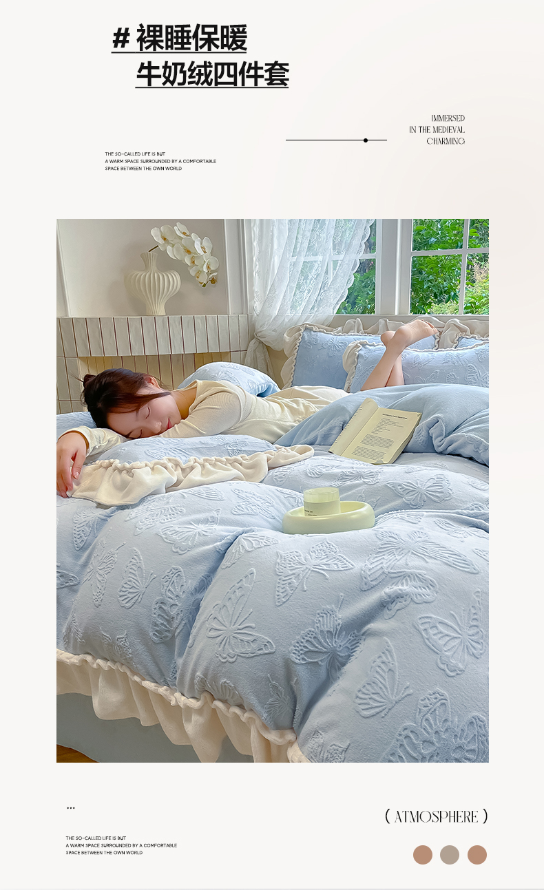 (总)水云缦 2025新款牛奶绒木耳边四件套-蝶舞系列,蝶舞-樱花粉,蝶舞-奶昔白,蝶舞-天空蓝,蝶舞-香芋紫,蝶舞-香槟金
