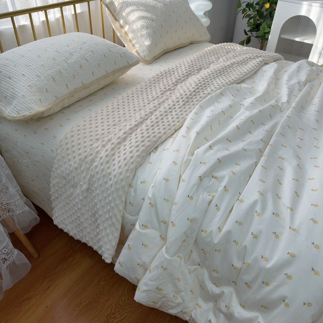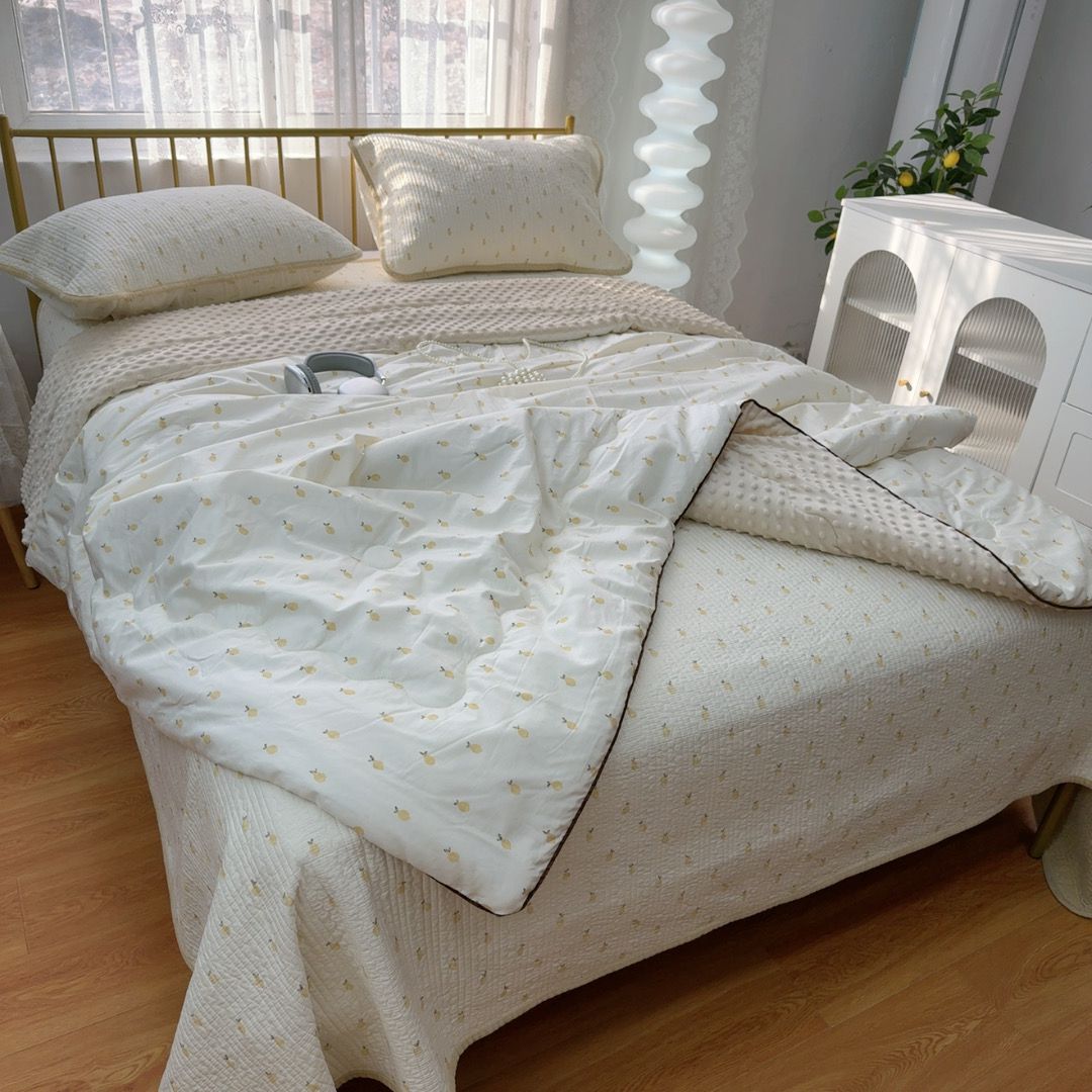 暖居 2026新款一面纯棉一面绒床盖+同款纯棉豆豆被跑量 奶油波罗