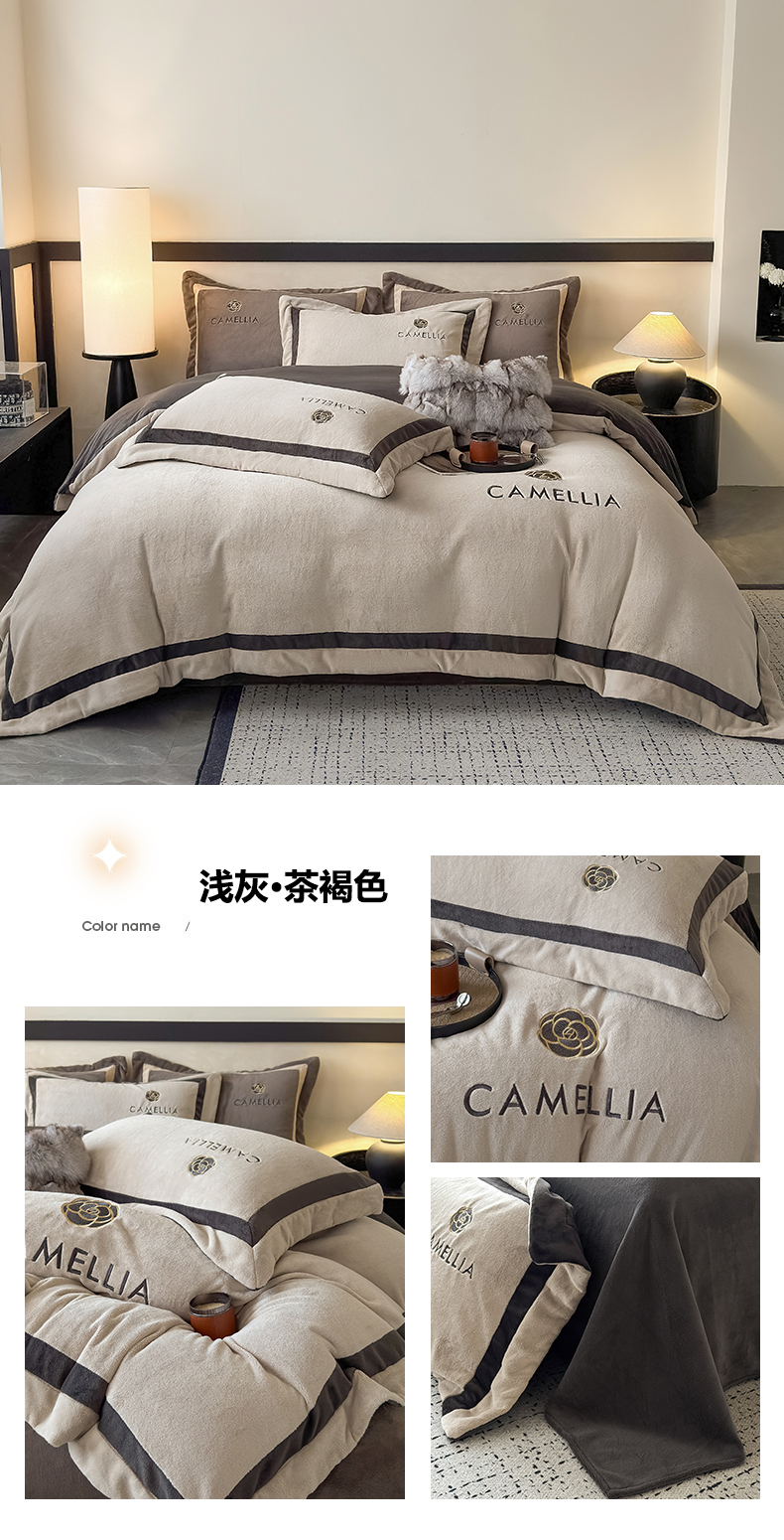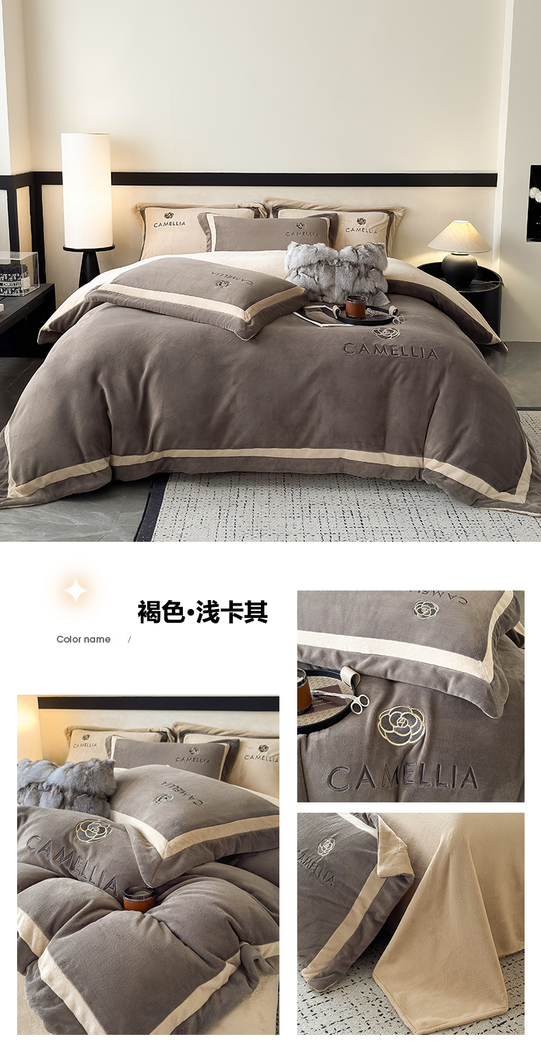 (总)水云缦 2025新款双拼角牛奶绒绣花四件套系列,浅灰-茶褐色,浅卡其-褐色,奶白-褐色,樱粉-茶褐色,褐色-浅卡其