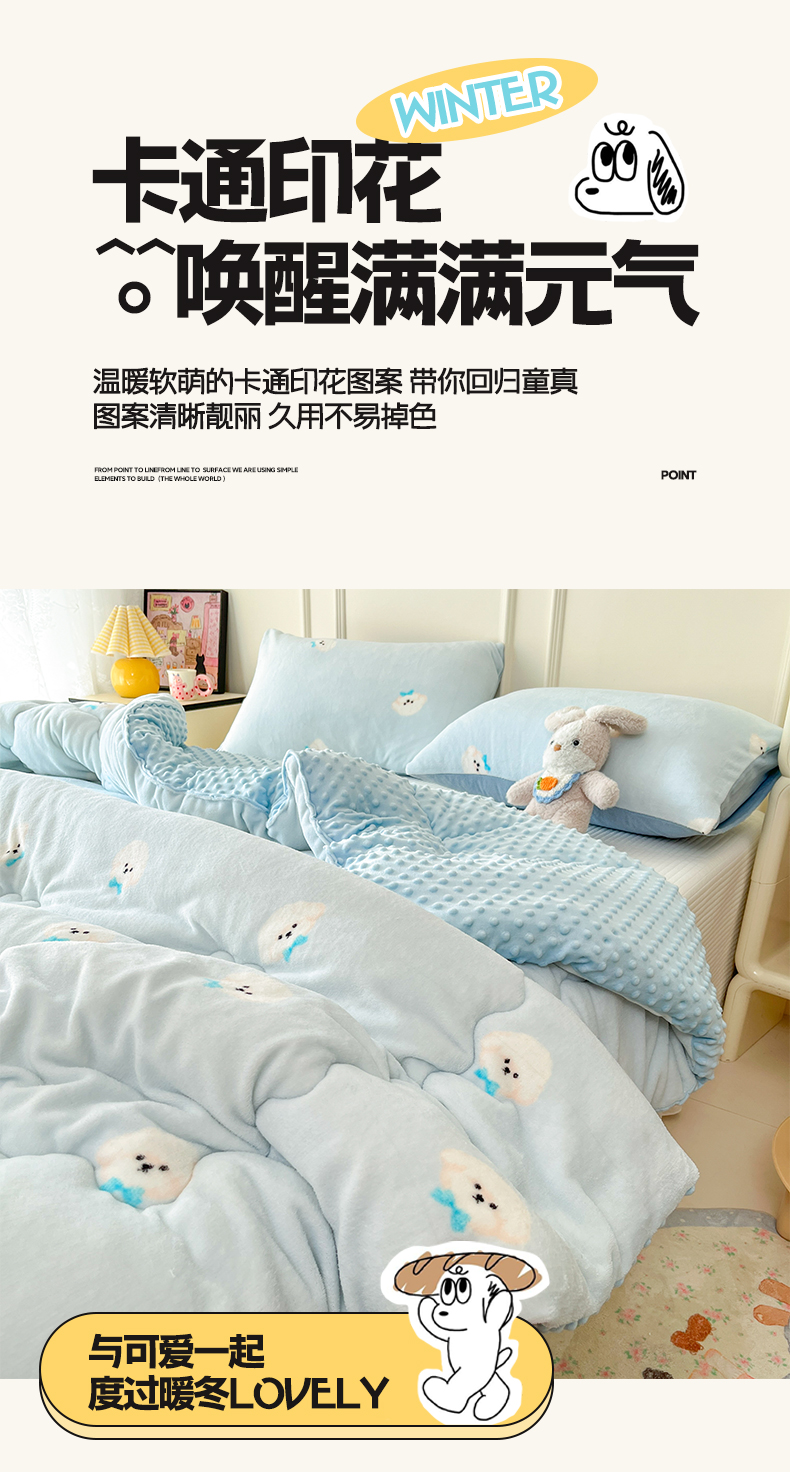 商品名称:贝扬思家纺 2025新款卡通牛奶绒豆豆绒抗菌被冬被被子被芯-奶豆 奶豆-绒绒小狗粉