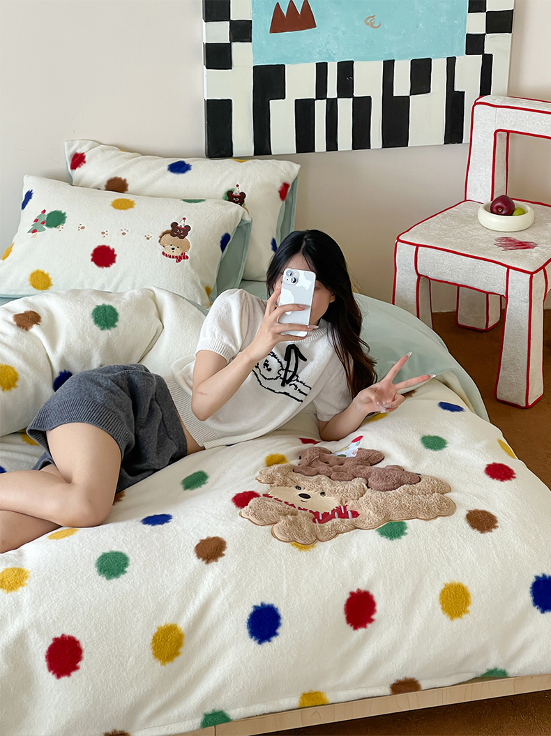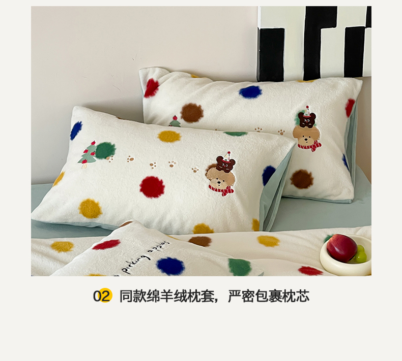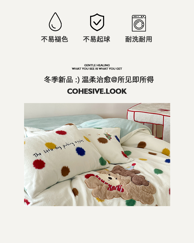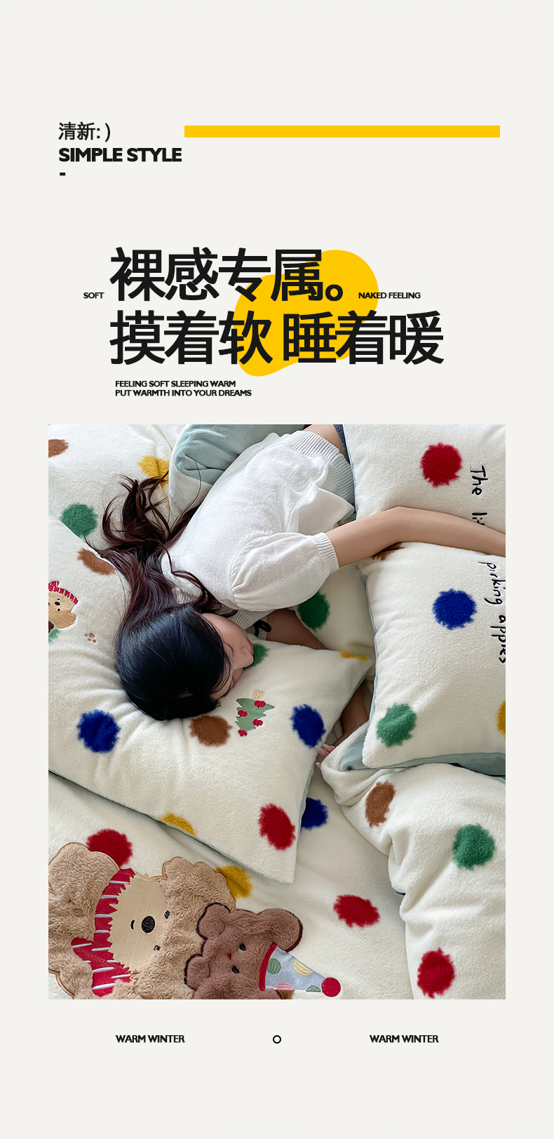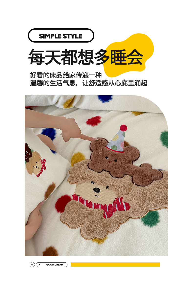 (总)桃子家居 2025新款A类高级仿生绵羊绒兔毛贴布绣刺绣工艺卡通少女加厚牛奶绒系列四件套,绵羊绒-冬日熊,绵羊绒-狗狗伙伴,绵羊绒-蓝条咖啡狗,绵羊绒-毛球猫咪,绵羊绒-圣诞小狗,绵羊绒-星星人