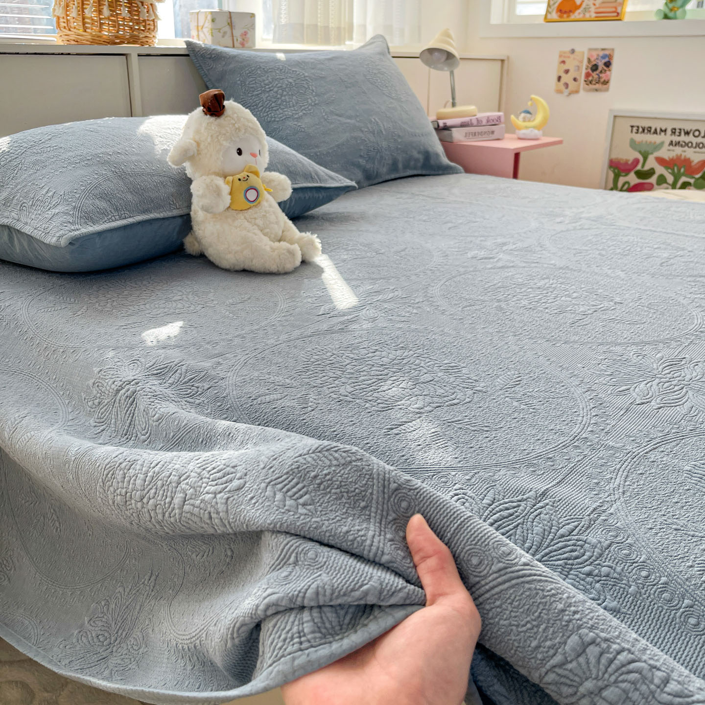 (总)源舜家纺 2025新款牛奶婴儿绒米粒绣韩系花边床盖三件套,婴儿草绿,婴儿豆沙,婴儿粉,婴儿灰,婴儿灰蓝,婴儿蓝,婴儿深绿,婴儿紫