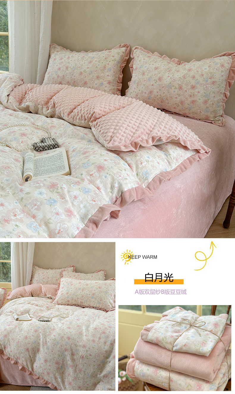 当前位置: 91家纺网 > 商品网购 > 床品套件 > 四件套 > 全棉普通四件套 > 麦伦家居 2025多功能床品全棉纯棉A类有氧双层纱+豆豆绒四件套荷叶边系列 组合图仅供展示不可下单