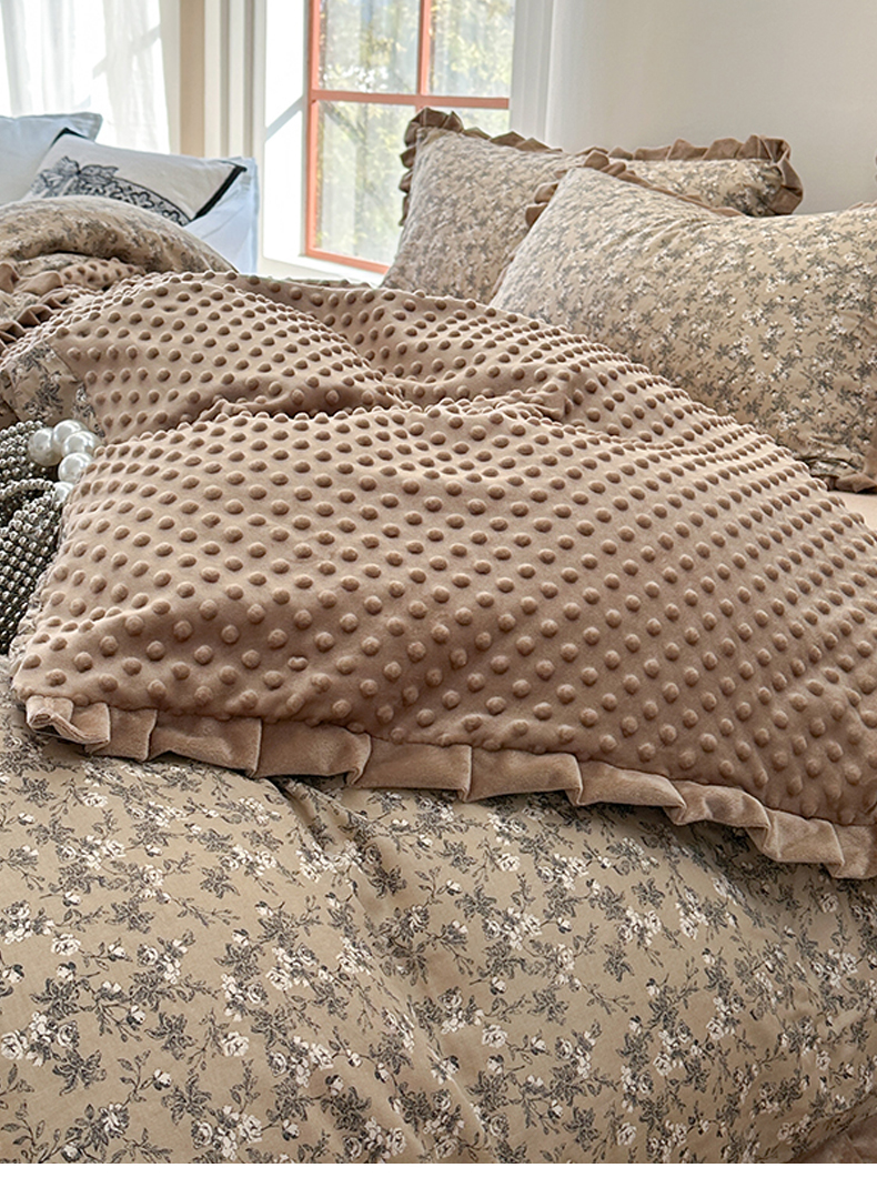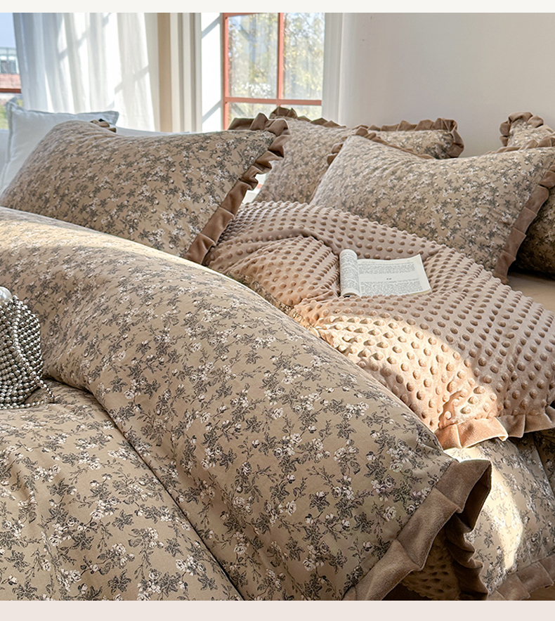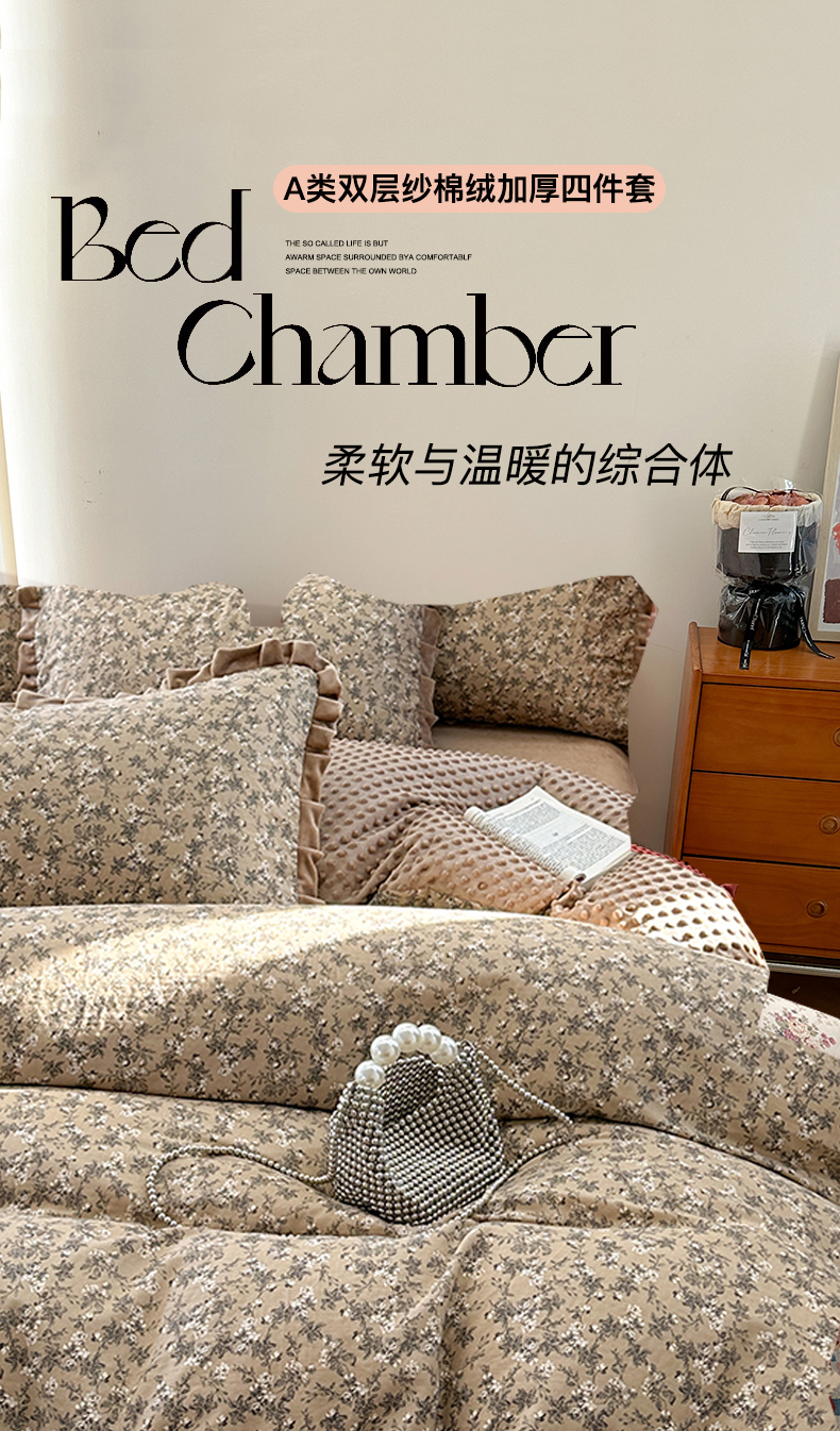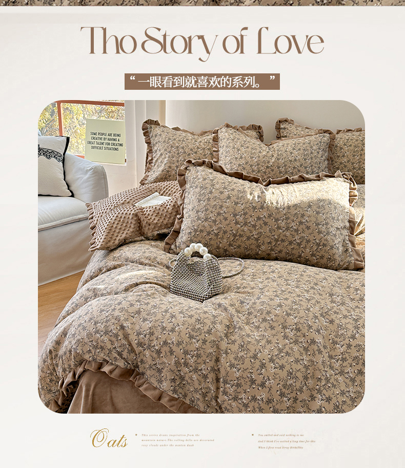 当前位置: 91家纺网 > 商品网购 > 床品套件 > 四件套 > 全棉普通四件套 > 麦伦家居 2025多功能床品全棉纯棉A类有氧双层纱+豆豆绒四件套荷叶边系列 晚秋