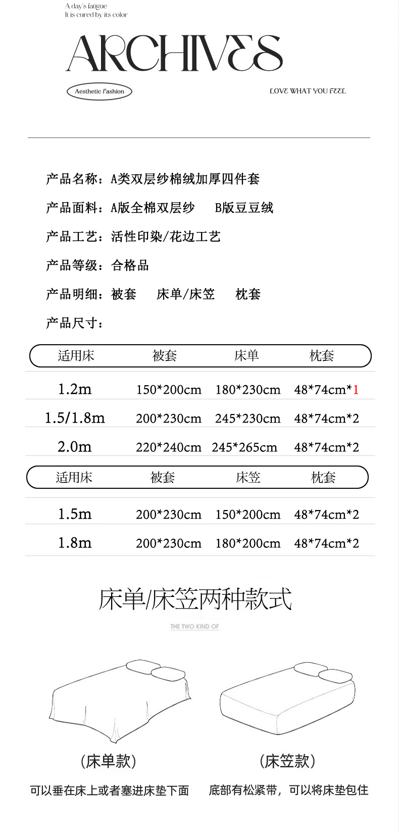 【床笠款】1.8四件套-被套200x230 | ¥155.00 |