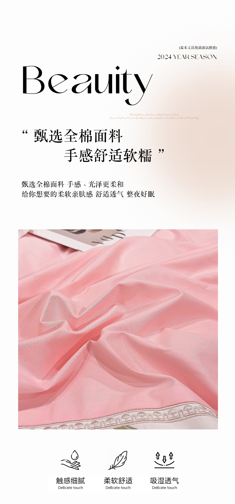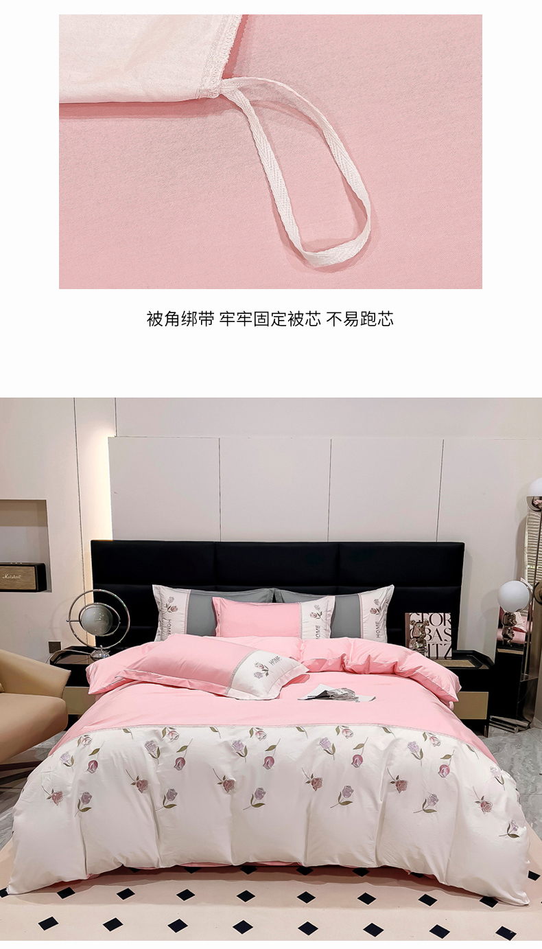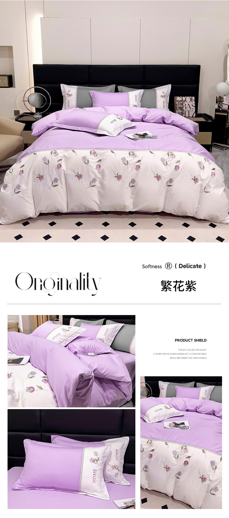 (总)优姿家纺 2026新款全棉拼接绣花四件套,繁花粉,繁花灰,繁花桔,繁花蓝,繁花绿,繁花紫