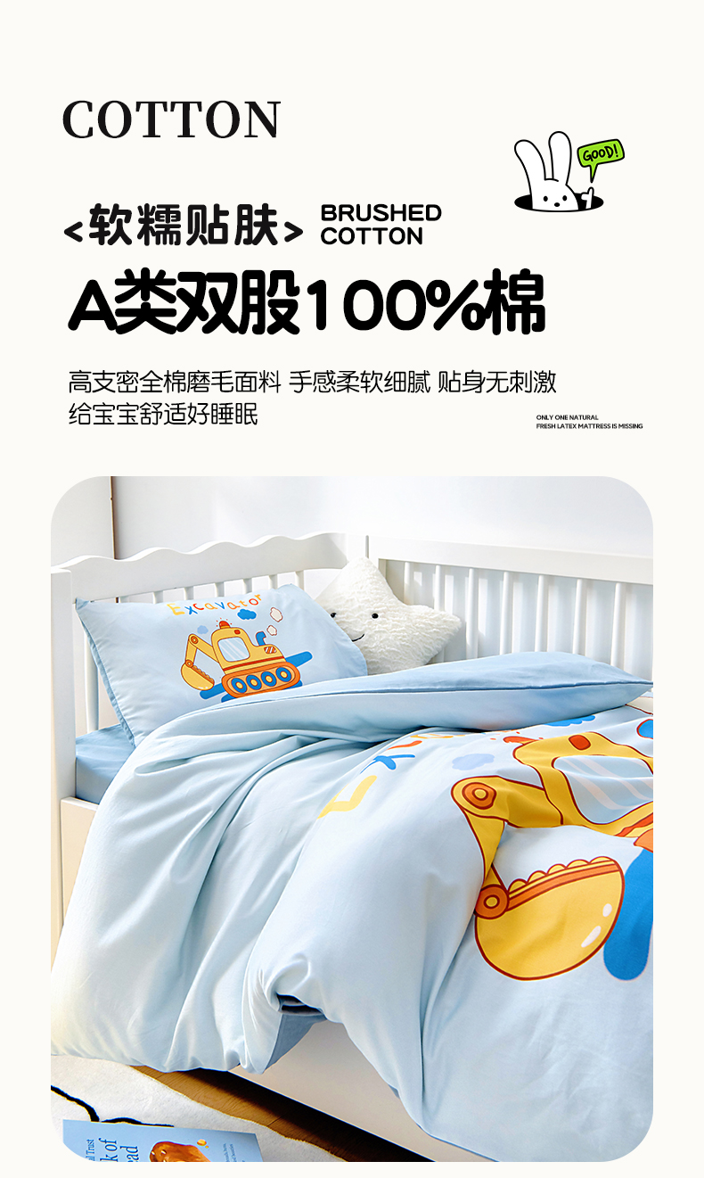 • 91家纺网 家纺一手货源 找家纺 (总)梵赫 2025新款加厚牛奶绒贴布绣原创卡通幼儿园套件儿童三件套,超级小萌怪,可爱小鸭,围巾兔,机灵小挖机,巧克力熊,组合,大象先生